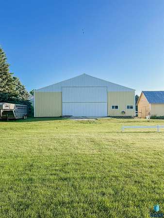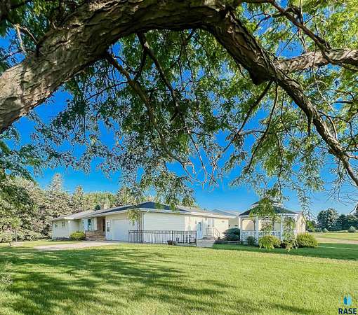 Acreage Alert! Welcome to this spacious ranch style home nestled on approximately 5.4 acres of peaceful Rock County land. This impressive property offers three main floor bedrooms, a dedicated office space, and generous living areas designed for comfort and functionality. The main floor also features an expansive addition, including a large laundry room and an extra bathroom. An additional laundry is in the lower level for added convenience. You'll love the abundance of cabinetry, closet space, and storage throughout the home. Downstairs, enjoy a kitchen or wet bar area, ideal for entertaining or extended living.The property truly shines with multiple outbuildings ideal for machinery, hobbies, or business needs. The largest shed measures 56' x 90', another is 50' x 45', with four additional outbuildings for versatile use. Ensuring continuous operation, this acreage has an automatic generator. Whether you're soaking in breathtaking sunrises and sunsets or enjoying the peaceful views of rolling prairie, this acreage offers the space, setting, and tranquility you've been waiting for.