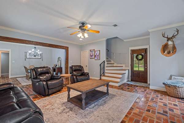 Welcome to your own private retreat!This Home is sitting on 10.76 beautiful acres +/-, the stunning property offers the perfect blend of comfort, functionality, and peaceful country living.The home features 4 bedrooms and 2.5 bathrooms, with a warm and inviting layout designed for both everyday living and entertaining. From the moment you step onto the charming front porch, you'll feel right at home.Inside, you'll find a spacious living area with cozy charm, open dining and kitchen space perfect for gathering, beautiful finishes and natural light throughout.This home offers functional layout with room for the whole family.Step outside and enjoy everything this property has to offer,10.76 acres of privacy and room to roam, a 1,600 sq ft shop ideal for equipment, hobbies and storage, with peaceful wooded surroundings and a long private drive.Whether you're looking for space for your family, or just a quiet escape from town, this property checks every box.Country living with convenience, space, and versatility!This one is a must-see!!