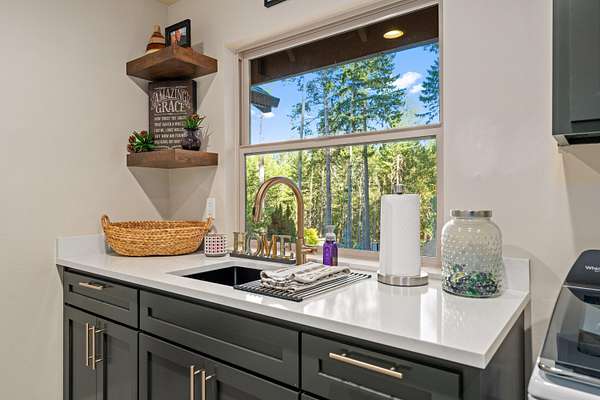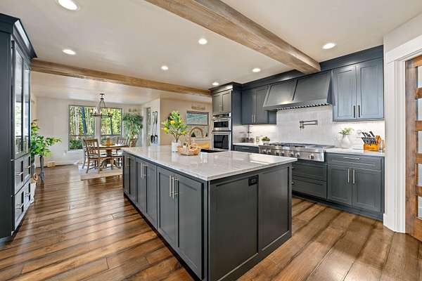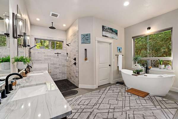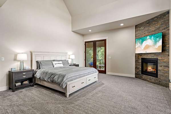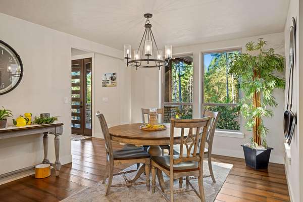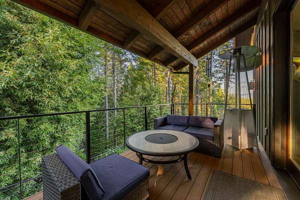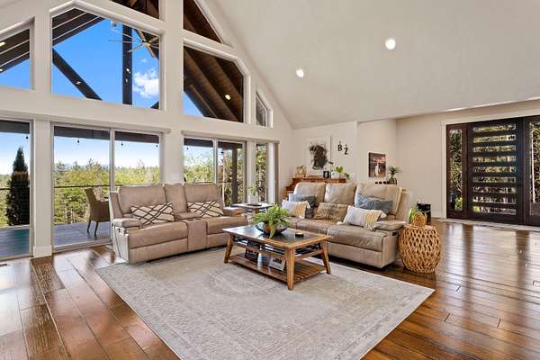 Mountain Lodge Retreat!! Custom Home is app 3157 sq ft, 4 bed, 4.5 baths, with additional Studio D/S of app 390 sq ft for visitors or family. Perched perfectly on 3.43 acres overlooking the valley, hills, and the city in the distance. Upon entry, greeted with soaring vaulted L/R, gas fireplace, expansive windows that allow for stunning views, natural light, and access to the open beam covered porch. Primary ensuite, is vaulted as well, with its own gas f/p & side porch. Main bath offers heated tile flooring, curb less oversized shower, soaker tub, spacious walk in closet, and water closet. Expansive kitchen is equipped with high end appliances designed for both serious cooking and entertaining. The loft hosts a 2nd ensuite, and seating area. The main floor also offers a spacious dining room, 2 b/r full guest bath, 1/2 bath for guests, and large laundry room. There is interior & exterior access to the fully equipped guest studio quarters below. Property is fenced, with lush back lawn.