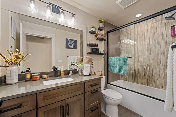 - Breakfast Bar, Ceiling Fan(s), Double Vanity, Enclosed Toilet(s), High Speed Internet, In-Law Floorplan, Kitchen Island, Open Floorplan, Pantry, Primary Downstairs, Tile Shower, Vaulted Ceiling(s), Walk-In Closet(s)