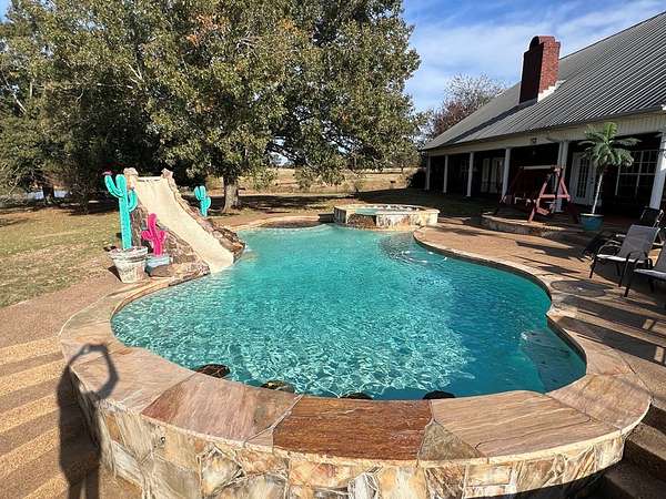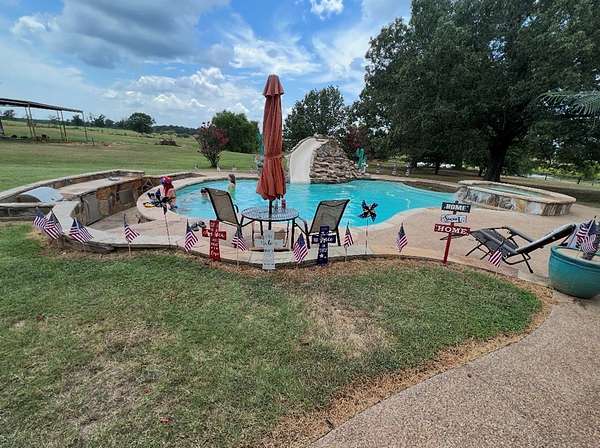 `Welcome to your dream home! This stunning and well appointed property is a must see. Located in desirable Central Heights this ranch style home sits on a sprawling 6.5 acres in a peaceful and serene setting. This spacious 3300 sf home has 3bd, 3ba, a huge living area, dining room, office, bonus room and laundry room. The upstairs has been plumbed for water so it can easily be added onto for additional rooms or used as a storage area. Cozy up to the fireplace in the living area during the cold. In the warmer months treat yourself to the custom built swimming pool outside. This pool is an oasis complete with a waterfall, slide, hot tub, and swim up bar. Whether you want to entertain or enjoy the peace and quiet, this is the paradise you've been looking for! Spectacular sunset views are definitely a bonus. With a pond on the property and a pole barn, raising livestock is also a great option. Don't wait. Come check this one out today!