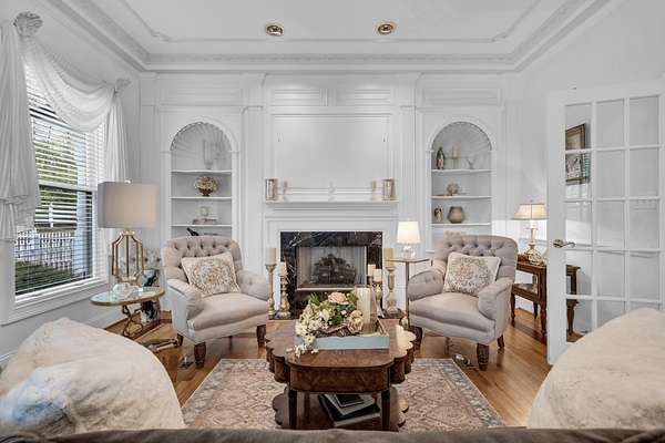 Perched peacefully atop a hill, this stunning 6-bedroom, 3.5-bath Victorian estate sits on 20 fully fenced acres within a 32± acre tract, offering privacy, pastureland, and timeless character. Known as Three Gables, the 4,122 sq ft custom home was built in 2000 for the town’s primary physician and blends classic Victorian architecture with modern convenience.