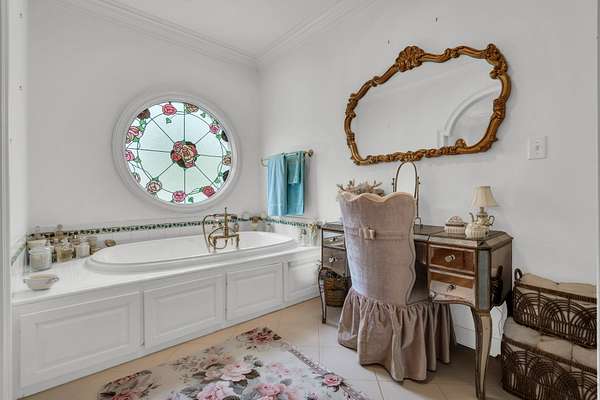 The property is equipped with a whole-home generator, UV water filtration, water softener on the main well, a second well, and high-speed fiber internet. Outdoors you’ll find mature timber, a light-walled garden courtyard, and distinctive copper gables and gutters that highlight the home’s architectural charm.