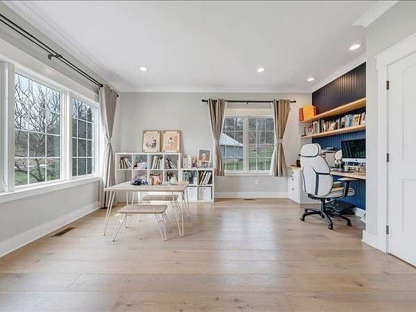 A magazine like Custom-built all-brick home on a rare 2.17-acre cul-de-sac lot within the town limits of Blacksburg—a property that is nearly impossible to find on today’s market. Designed with a contemporary open-concept layout, the main level features spacious living areas filled with natural light, wide-plank European oak flooring, and high-end finishes throughout. The chef’s kitchen showcases premium appliances, Amish handcrafted solid wood cabinetry, bulter pantry with sink and a walk-in pantry. Quality construction is evident not only in the interior selections but also in features such as casement windows and a conditioned crawlspace.The property also offers a large black steel fenced yard, a beautifully designed laundry room, finished bonus room, walk-in pantry , built-in study space, luxury tile showers, and generous storage including his-and-her walk-in closets in the primary suite. A rare combination of quality, stylish, privacy, acreage, and in-town convenience.
