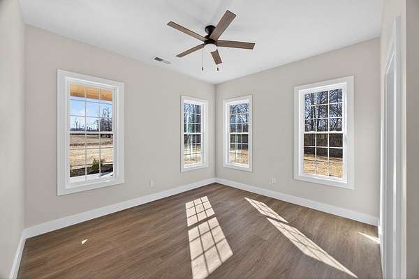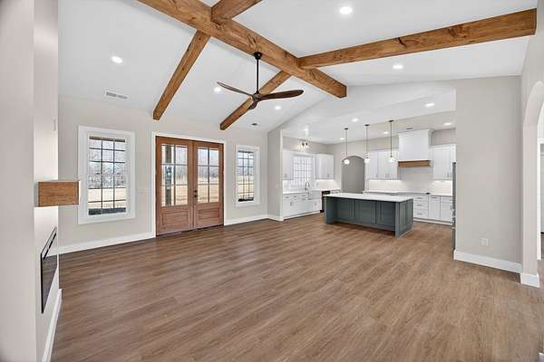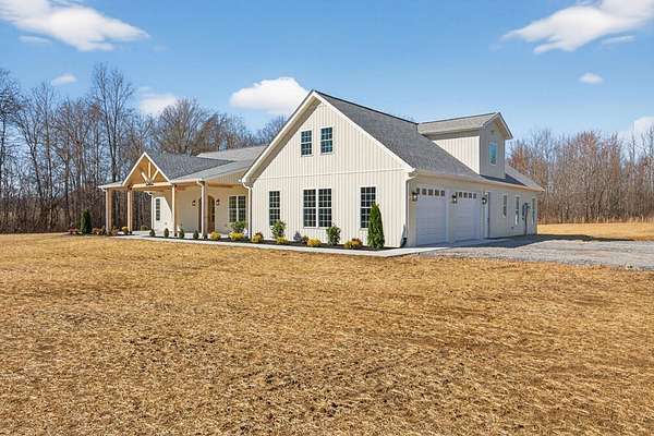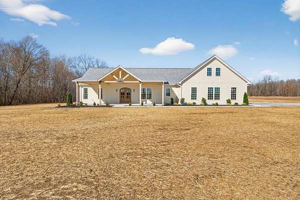 SELLER WILLING TO OFFER CONSESSIONS FOR BUYERS CLOSING COST OR RATE BUY DOWN. Set on 5 peaceful acres, this new home invites a slower, more thoughtful way of living. The white modern farmhouse exterior feels fresh yet timeless, while warm wood details guide you inside. Sunlight moves across wide-plank floors into an open living area anchored by a welcoming fireplace. The kitchen sits at the center-spacious, ideal for gathering, & complete with a generous island and a pantry that feels more like a hidden prep room. Bedrooms & bathrooms offer a retreat with tile floors, a large tiled shower, & soaking tub. Two primary suites make this home ideal for multi-generational living. A versatile bonus room upstairs waits for your own purpose. Safe room in garage for extra peace of mind. Step onto the covered front or back porch & take in the quiet sweep of land around you. This is a home designed for everyday ease, with thoughtful details that make each moment feel grounded & comfortable.