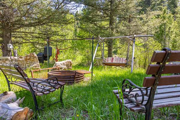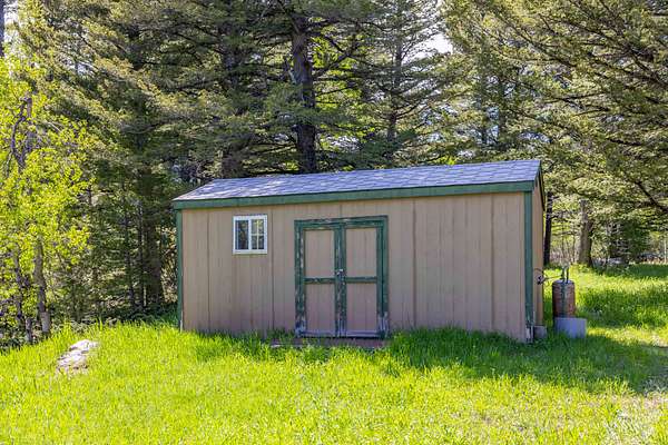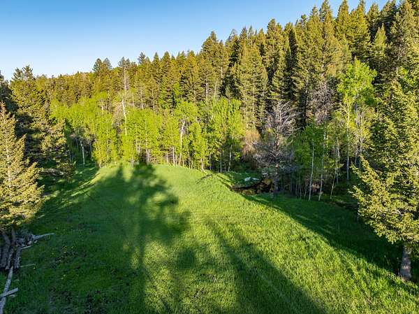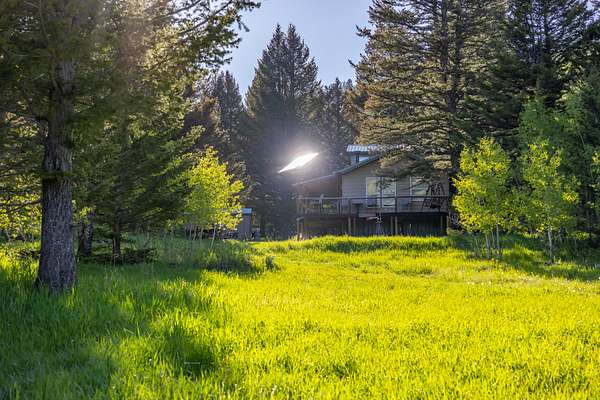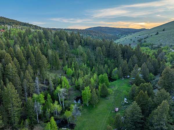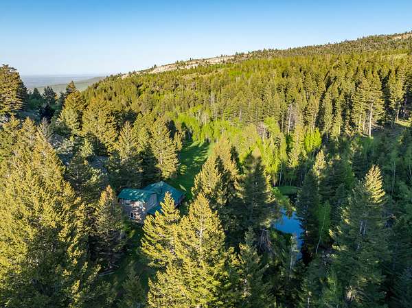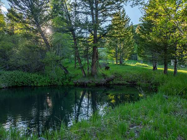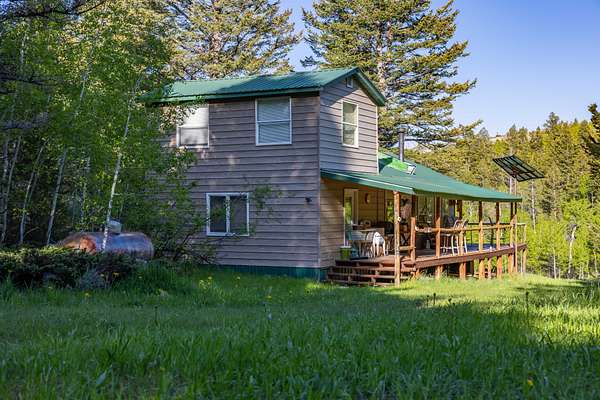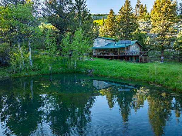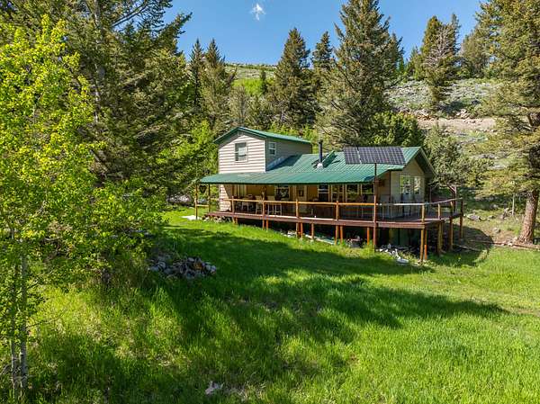 Set in the gated Homestead Park subdivision, 515 Lander Mountain Road features a 1,120 sq ft cabin on 2.43 acres with private access to the Shoshone National Forest. Around 600 feet of Sheep Creek and four trout filled ponds wind through mature timber and lush green meadows. Live water, a private well, and frequent elk and deer make this a secluded mountain escape.