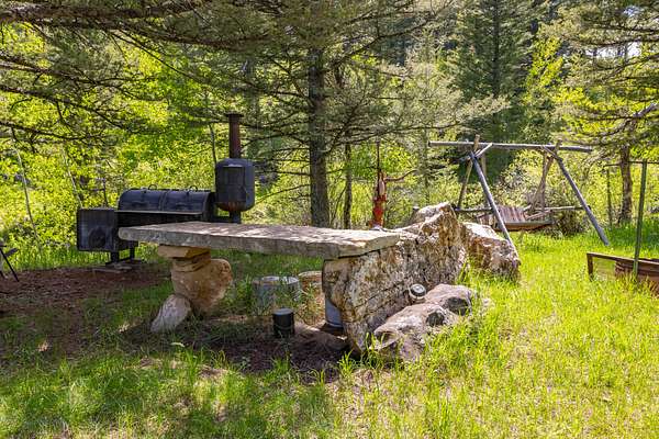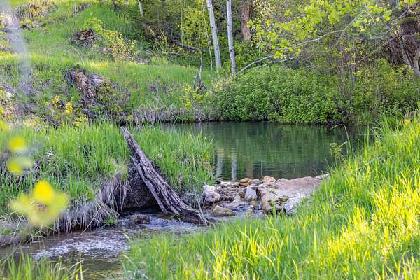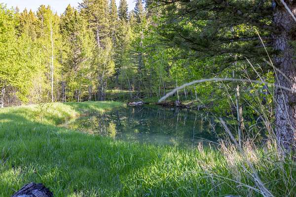 Sheep Creek flows roughly 600 feet through the property, feeding four trout filled ponds and vibrant, creek fed meadows. The mix of open grassy meadows and slopes dotted with mature spruce, pine, and quaking aspen provides both privacy and beauty. Abundant wildlife including elk, deer, moose, and small game frequent the area, making it a prime setting for hunting, fishing, or simply enjoying Wyoming’s mountain landscape.