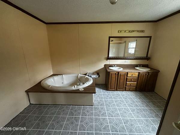 - Blown/Textured Ceilings, Ceiling Fan(s), Commode Room, Eat-In Kitchen, Fiber Glass Shower, Laminate Counters, Soaking Tub, Walk-In Closet(s)