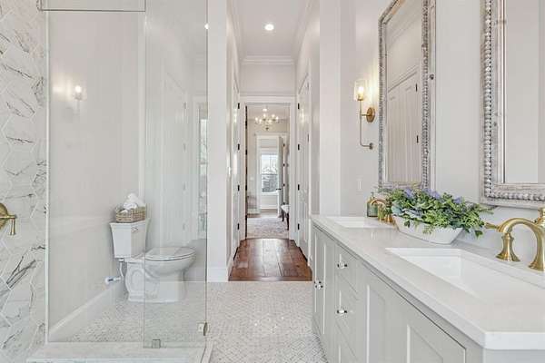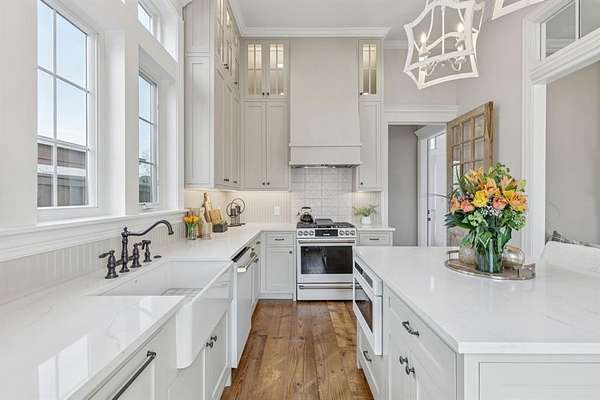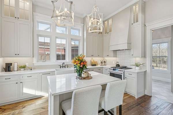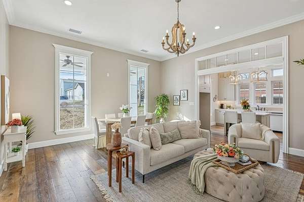 - Chandelier, Decorative Lighting, Double Vanity, Granite Counters, Kitchen Island, Natural Woodwork, Open Floorplan, Pantry, Walk-In Closet(s)