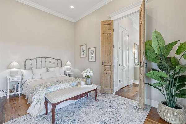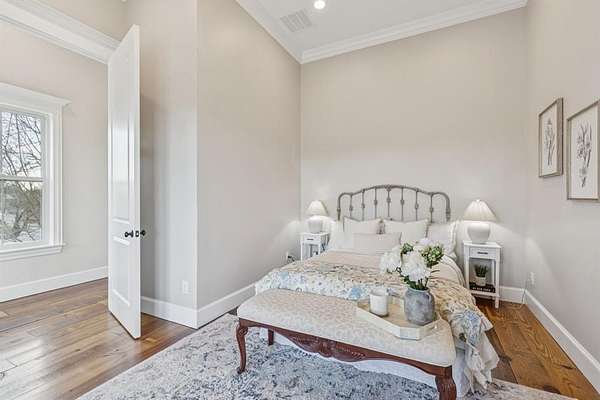 2% Buyer Concessions paid by the Builder to secure a rate as low as 5.125% fixed 30 yrCrafted by The White Sparrow Properties LLC, this thoughtfully designed home blends old-world charm with refined French-country elegance. A welcoming front porch, adorned with gas lanterns & intricate brickwork, sets a gracious first impression. Inside, exceptional craftsmanship is evident throughout, featuring soaring 12-foot ceilings, timeless entryway wallpaper, real wood moldings & trim, solid-core doors, & beautifully preserved 100-year-old reclaimed hardwood floors. The expansive living room is bathed in natural light from tall glass windows & anchored by a stunning fireplace, offering an ideal space for relaxing & entertaining. Open to the living area, the kitchen is equally impressive with ceiling-height cabinetry, SS appliances, farmhouse sink,& quartz countertops. Adjacent to the kitchen is a generously sized utility room complete with ample storage, sink,& a dog-wash station. The screened-in back porch provides a serene retreat centered around a cozy fireplace & overlooking breathtaking views of the nearly 2acre property. All bedrooms are thoughtfully positioned on the 2nd level, with a private primary suite. The primary retreat offers spectacular views of the expansive backyard through double doors that open onto a remarkable 39ft balcony. It offers dual walk-in closets & spa-inspired bath featuring dual sinks, soaking tub,& shower. Secondary bedrooms are filled with natural light, offer generous closet space, & share a well-appointed hallway bathroom with dual sinks & spacious shower. Adding to the home’s unique character are rare, decades-old wooden doors sourced from Egypt, featured in both the utility&primary. Situated on 1.85 acres, this exceptional property offers the tranquility of rural living with the convenience of walkability to Rockwall’s shops &restaurants, as well as close proximity to Harry Myers Park,HEB,IKEA, &more. Zoned for short-term rental