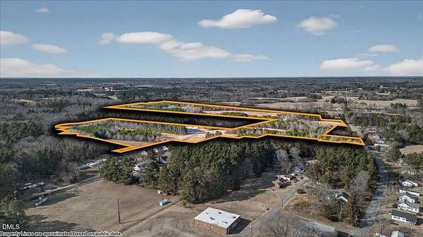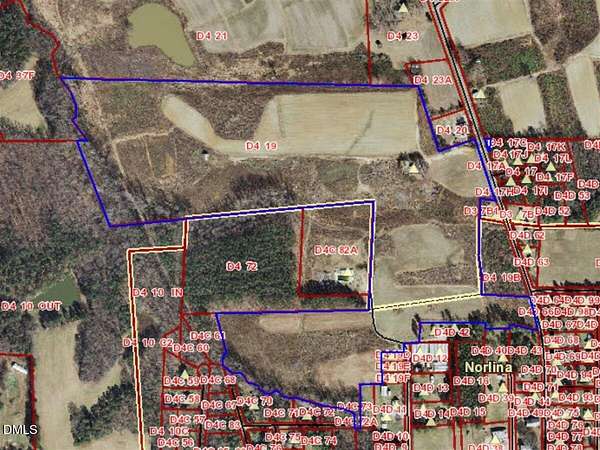 +/-71.81-acre Planned Unit Development (PUD) opportunity with concept plans approved by local authorities. The property is positioned for a large-scale, mixed-product residential community designed for phased development with integrated public recreation connectivity. Phase One is planned to back directly to Town of Norlina-owned property, where redevelopment of the municipal pool is anticipated, along with a ball field, pickleball courts, and playground. These town amenities are designed to connect seamlessly into Phase One, enhancing community integration and long-term residential appeal. Phase One includes 8 duplexes, 78 detached single-family homes of varying sizes (some with garages), 65 townhomes, 2 quad-flex units, and 6 multifamily buildings, along with a self-storage facility as an income-producing component. Additional features include an internal roundabout for traffic circulation, a pond with picnic shelter and open-air non-denominational chapel, a workplace/shop building, community center and cafe, pocket parks, open green space, walking and running trails, sidewalks, and ample parking. Phase Two expands the development with 4 duplexes, 92 detached single-family homes, 48 townhomes, 3 quad-flex units, and 8 multifamily buildings, along with two additional ponds, expanded self-storage, and a dog park. The site offers two primary access points from Walker Avenue, includes existing farm roads and open fields, and features predominantly flat topography across approximately 71.81 acres. City water and sewer are available to service the development, and per GIS, none of the property lies within a flood zone. The PUD concept has been approved by local authorities, providing a structured framework for phased residential development with diverse product types and integrated community amenities. Property is in the ETJ. NOTE: Public water and sewer may have to be run to the property at the developer's expense. Check with the Town. NOTE: Lot lines on pictures are not survey lines. They are only estimates based on public data.