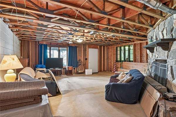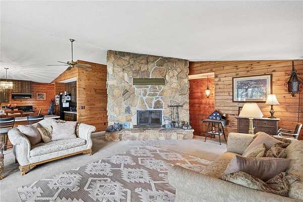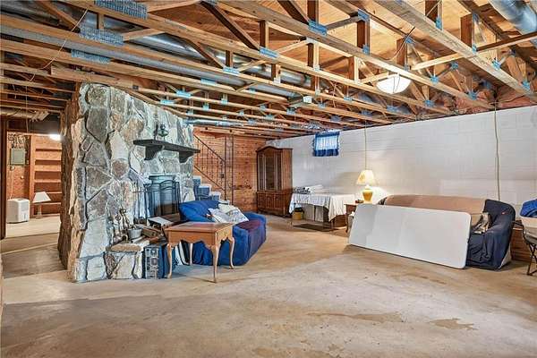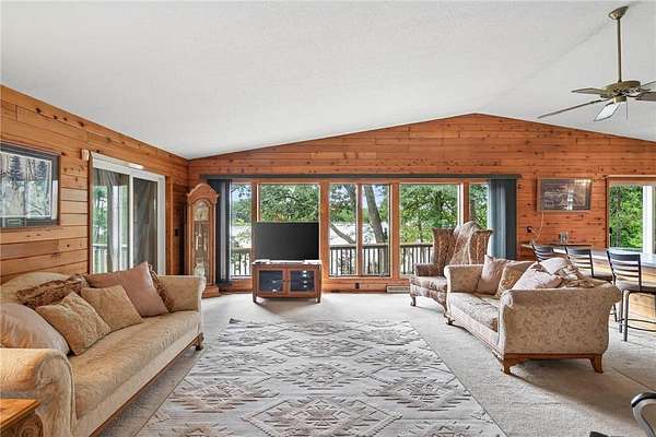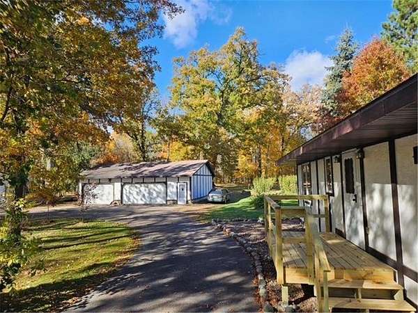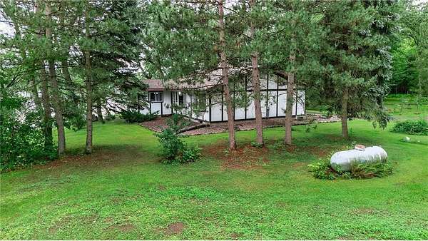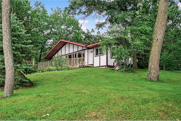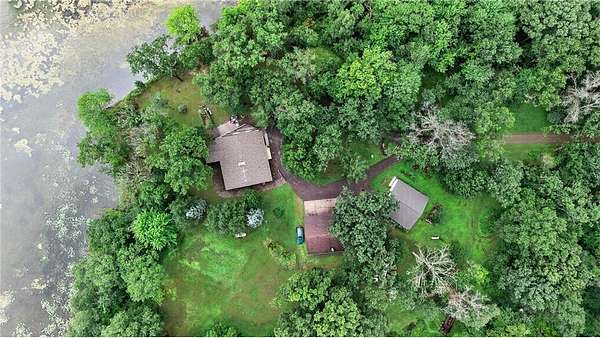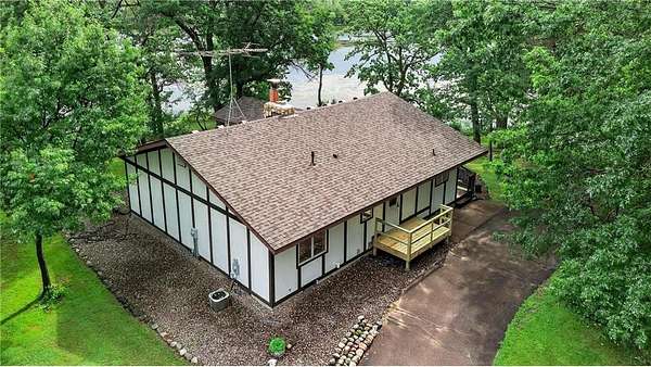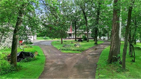 Escape to your very own wooded oasis on the lake! Driving down the driveway nestled in the pines and hardwoods feels like you are way up north. It is so quiet, you won't hear a thing while watching the sun come up in the morning. Enjoy the partially finished sunporch for coffee while soaking in the outdoors and all the beautiful birds. Heat your house with a roaring fire in the enormous stone fireplace and enjoy the lake views from an abundance of windows. Kitchen loaded with cabinets and plenty of counter space, you will have a hard time getting any cooking done while watching all the wildlife! There is plenty of room to expand by finishing the lower walkout basement, you will find a huge stone fireplace here too! Check out the huge deck, over 300 sq ft of outdoor hang out space! This property is not lacking garage space, check out the 4-car detached garage and large pole building! So many uses! They provide plenty of storage for vehicles, boats and recreational toys. Whether you’re looking for a weekend retreat, hunting and fishing getaway, or peaceful full-time living surrounded by nature, this property has it all. The lake front hasn't been used in awhile, the owner did have a dock and boats here for many years The property is so pretty with towering pines and hardwoods at the end of a dead end road. Pass through the privacy gate and you feel like you are headed for a retreat! You won't want to miss this wonderful opportunity. One year home warranty provided by the seller.