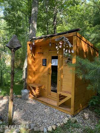 Outdoor amenities enhance the property's appeal. The main cabin includes an 8x16 heated spa pool and an outdoor sauna room, providing a relaxing retreat in any season. A jetted hot tub sits just outside the tiny home rental. The land also includes a greenhouse for gardening, a carport, and a small storage shed. A separate one-room tiny home is located on the property and is on the short term rental program rental also can be used for guest accommodations, or studio use.