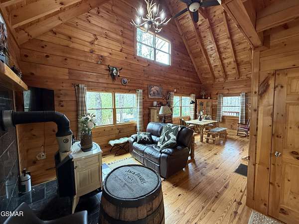 Discover your own private retreat in the small, scenic town of Beautiful Del Rio. This TRUE LOG cabin, built in 2013 well maintained recently stained and below block features lightly tinted stucco. This Cabin is nestled in the woods of the Cherokee National Forest on 3.33 unrestricted acres. The setting includes wooded privacy, established walking trails, and enough space to add another cabin or guest house. The property is currently operating as an active Airbnb, offering an immediate investment opportunity. The main cabin features 980 square feet of finished living space along with an additional 784 square feet of unfinished basement that is ready for future expansion. The interior includes one bedroom, one full bath, a large sleeping loft, hardwood floors throughout the main living areas, and a tiled walk-in shower in the full bath, which also includes a stackable washer and dryer. The living room is warmed by a wood-burning stove, and the kitchen is fully equipped with a large refrigerator, dishwasher, gas range, and microwave. Home has central heat and air using a heat pump for year-round comfort Outdoor amenities enhance the property's appeal. The main cabin includes an 8*16 heated spa pool and an outdoor sauna room, providing a relaxing retreat in any season. A jetted hot tub sits just outside the tiny home rental. Additionally, there is a small pond to sit near and enjoy the peaceful sound of the water. The land also includes a greenhouse for gardening, a carport, and a small storage shed. A separate one-room tiny home is located on the property and is on the short-term rental program rental also can be used for guest accommodations, or studio use. There is a spot for a smaller camper with a 30amp electric connection as well. Utility features include underground electric and phone service, a well producing approximately 10 gallons per minute, a one-bedroom septic system, insta-hot water, and a blue-flame gas heater located in the basement, which also has three air vents. Internet options include, satellite, or Starlink RV. Gatlinburg is approximately an hour away, while white-water rafting and zipline tours can be reached within 10 to 15 minutes. Newport provides nearby access to shopping, dining, and medical facilities. Check out the rental schedule by going using the links: Main Cabin Tiny Home