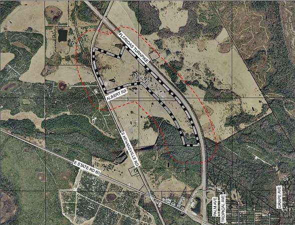 From the SR 60/Turnpike intersection at Yeehaw Junction, go west to US 441 (Kenansville Rd), turn right and go 1.3 miles to property on EAST side of road (Turnpike runs along east side of land).