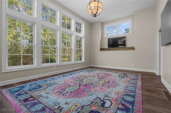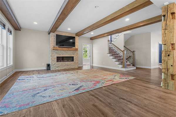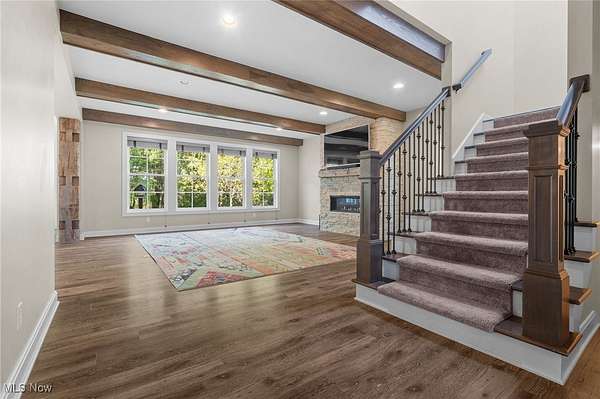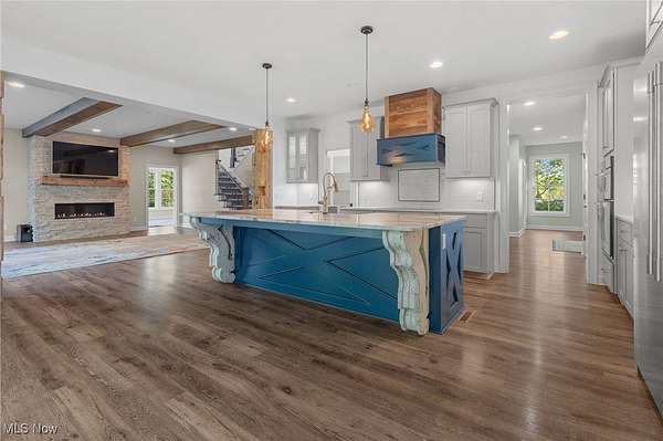 - Beamed Ceilings, Breakfast Bar, Double Vanity, Eat In Kitchen, Entrance Foyer, High Ceilings, Kitchen Island, Pantry, Recessed Lighting, Tray Ceilings, Walk In Closets, Wet Bar