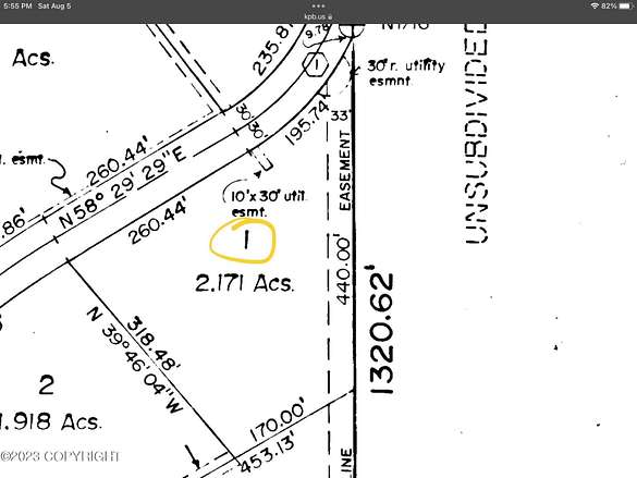 Est $374/mo2.17 acre VIEW LOT of mountains and inlet in Nikiski. Large property in a nicely built neighborhood. Borough maintained gravel road. Power and gas run along Tordrillo Ln. Also a utility easement on the east side may possibly be used for power. Drive by and walk the property! There is an existing path/dirt road that runs along the upper bench. Owner finance with 20% down min. BTV details.