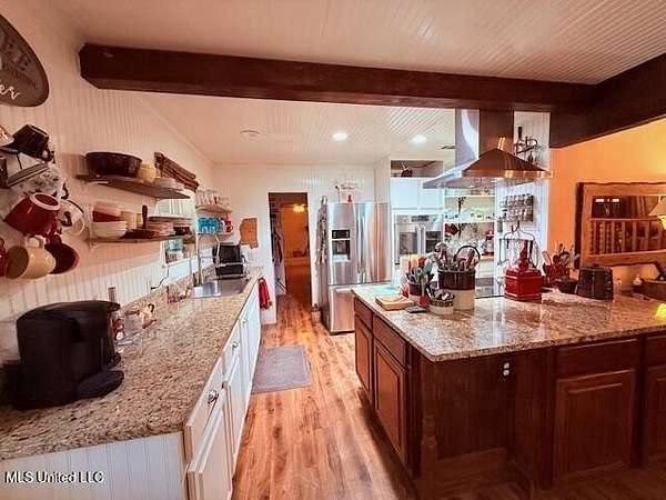 2 Story Southern Charm on 5.2 acres on Airline Highway in Tylertown, MS. Cozy 2,700 square foot home that consist of 3 bedrooms and 3 baths, beautiful custom kitchen for the cooking enthusiast, 2 living rooms, with a nice dining area connected to the formal living room. Subject is all on slab and possess an attached 2 car carport, and a nice back porch area that overlooks a lush back yard. Situated in the back yard is a fenced in area with some goats and a rain hut along with another older standing equipment shed. The front yard is dotted with some mature hardwoods and has board fencing down the road frontage. The balance of the property is wooded with a mixture of towering pines and hardwoods giving the new owner a little room to roam.