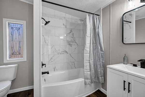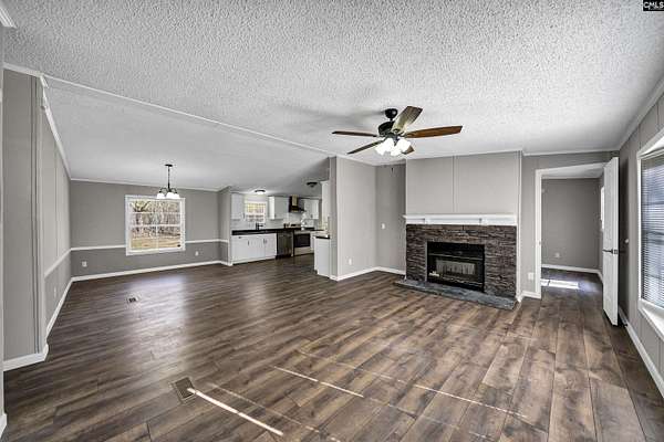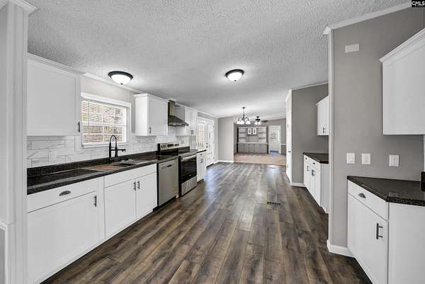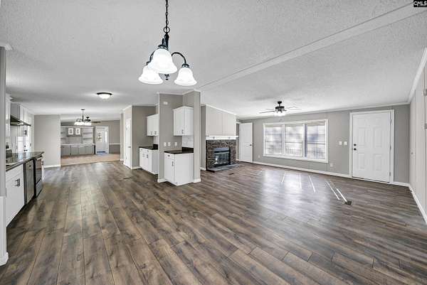 Fully renovated 4-bedroom, 2-bath 28x80 double wide manufactured home situated on a private, spacious 2.34 ACRES with Kershaw County taxes and Lugoff-Elgin schools! This move-in-ready property features a brand-new oversized front porch deck and a new large rear deck--perfect for outdoor living and entertaining, as well as new platform and steps off the laundry room side door. Inside, practically everything is new. The kitchen offers brand-new cabinets, new countertops, beautiful new tile backsplash, new stainless steel appliances, a new stainless single-basin sink with pull-down spray faucet, and a separate pantry. Enjoy both a dining area and an eat-in kitchen, plus an additional den for flexible living space.The living room showcases a stunning double stone fireplace that opens into the owner's suite, which includes a separate sitting area ideal for an office, workout space, or reading nook. The owner's suite also features a large walk-in closet with built-in shelving and a fully renovated ensuite bath with separate new double vanities, new faucets, updated lighting, vanity mirrors, a tiled walk-in shower, and a separate soaking tub with tile surround.Both bathrooms have been completely updated with tile surrounds, new vanities, and modern updated fixtures and lighting. Additional upgrades include new neutral interior paint, new carpet, new water resistant laminate flooring, new interior doors, new light fixtures, a large laundry room with utility sink, and a brand-new HVAC system.The expansive lot provides plenty of room for a workshop, camper, swimming pool, garden, or additional outdoor projects. A rare combination of space, upgrades, and value--this home truly feels brand new inside and out! Buyer to verify all info. Disclaimer: CMLS has not reviewed and, therefore, does not endorse vendors who may appear in listings.