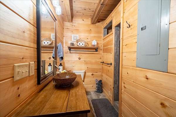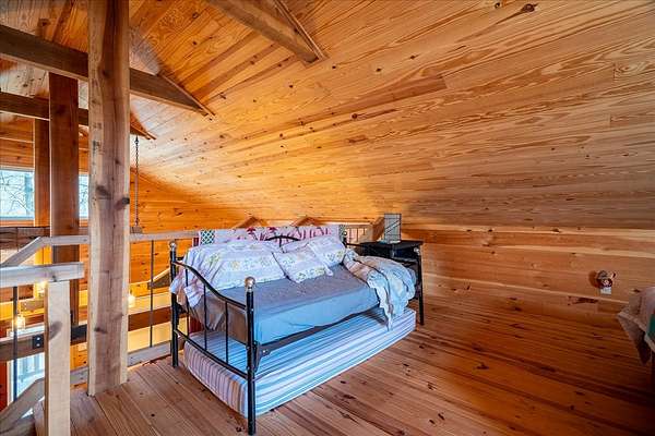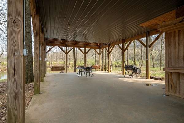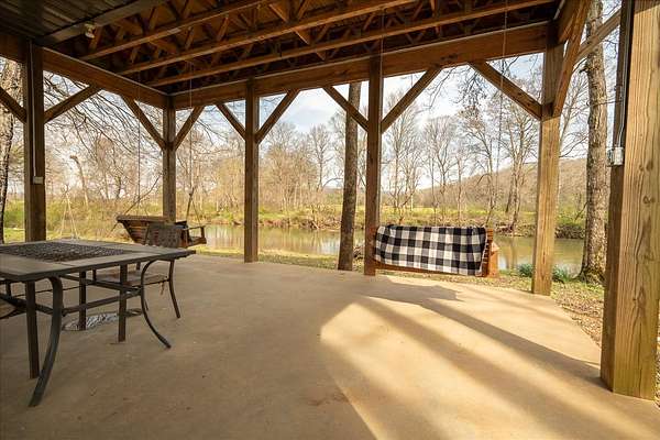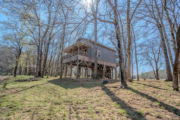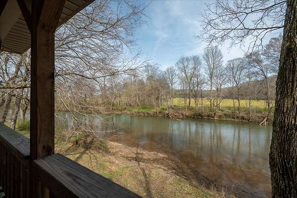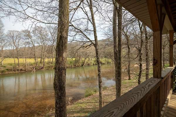 Shoal Creek waterfront retreat featuring 154 feet of private creek frontage on 2.28 acres. This 2 bedroom, 2 bath cabin offers vaulted ceilings, exposed beams, hardwood floors, and a spacious loft for additional sleeping or living space. Enjoy direct access to Shoal Creek for kayaking, fishing, swimming, and outdoor recreation. The property includes fiber optic internet, mini-split HVAC systems, and kitchen appliances, making it ideal as a primary residence, vacation home, or Airbnb investment property. Relax on the covered front porch overlooking the water or take the private steps down to the creek. Also included is a guest house/shop with a one-bedroom studio attached to a one-car garage—perfect for additional rental income or guest space. Located near NATRA trails for ATV riding, this private and secluded property offers abundant wildlife, rare eagle sightings, and the perfect setting for a turnkey short-term rental or peaceful getaway.