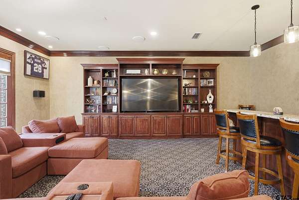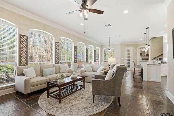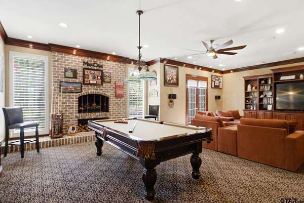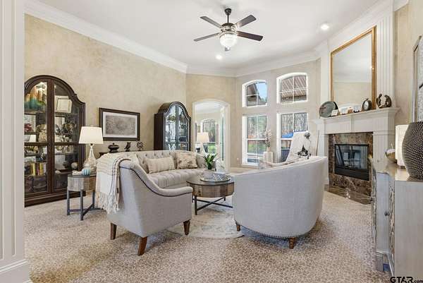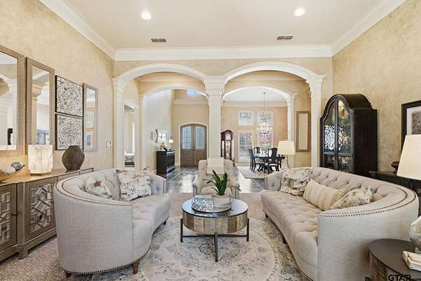 More than a home...this is a lifestyle! Tucked inside the gated enclave of Saddlebrook, this exceptional estate welcomes you with timeless architecture, graceful interiors, and spaces thoughtfully designed for both gathering and relaxation. At the heart of the home, the chef-inspired kitchen is light and bright with stunning granite, new appliances and a huge pantry. The kitchen flows effortlessly into five inviting living areas, creating a perfect setting for entertaining family and friends. One of the standout spaces is a spectacular "man cave," designed purely for enjoyment complete with a fireplace, wet bar...an ideal viewing area for sports and movies, and ample space for a full-size pool table. Expansive rooms, extraordinary storage, exquisite finishes, and an abundance of natural light define every corner of this remarkable home. Set on a breathtaking 2.447-acre lot, the grounds feel like your own private park overflowing with vibrant flowers, blooming trees, and peaceful outdoor spaces. The resort pool and spa provide the perfect retreat for lazy afternoons and warm Texas summers. This is more than a home...it's a rare opportunity you won't want to miss.