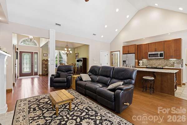 Made in America!! Purposefully curated, proudly built, this home is a statement of craftsmanship, intention, and lifestyle. Custom-built with materials, finishes, and features hand-selected and sourced from within the United States, this one-of-a-kind property offers a level of thoughtfulness and uniqueness that is nearly impossible to replicate. Set on 2 private, flat acres surrounded by mature foliage, the property lives like your own personal country retreat. Step outside to a backyard designed for both relaxation and entertaining, featuring a 16x32 saltwater pool with diving bell, six-person therapeutic hot tub, Trex deck, fire pit, outdoor shower, and a fully equipped outdoor kitchen with natural gas, 36" grill, 2-burner cooktop, sink, and dedicated canning station with tankless hot water. Whether you're hosting or unwinding, every detail has been considered. The land itself is just as special, high-producing blueberry bushes, enclosed garden beds, herb gardens, and whole-yard irrigation to every planting area create a true farm-to-table lifestyle right in your backyard. Wildlife is abundant, with birds, butterflies, bunnies, and more adding to the peaceful setting. Inside, the home continues to impress with radiant heated floors in the kitchen and bathrooms, extra-tall cabinetry with under-cabinet lighting, upgraded dimmer switches throughout, and thoughtful utility features like natural gas service and a gas-ready range. The flexible 1.5-story layout offers 3 bedrooms on the main level plus a spacious bonus room with half bath, ideal as a 4th bedroom, office, or guest suite. And where this home truly sets itself apart is in both its current livability and future potential, extensive walk-in storage off the bonus room, along with an additional unfinished section on the opposite side of the home that could easily be converted into expanded living space with the addition of a staircase near the secondary bedrooms. A rare opportunity to secure a property with built-in equity and room to grow over time without sacrificing its current comfort and design. Additional highlights include two storage sheds (one with ramp), covered RV carport with electric hookup and sensor lighting, multiple hose bibs, and even a front porch outlet dedicated to holiday lighting. Private, peaceful, and completely unique, this one is truly a unicorn!!