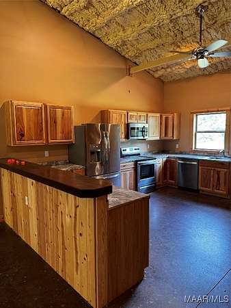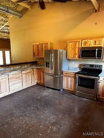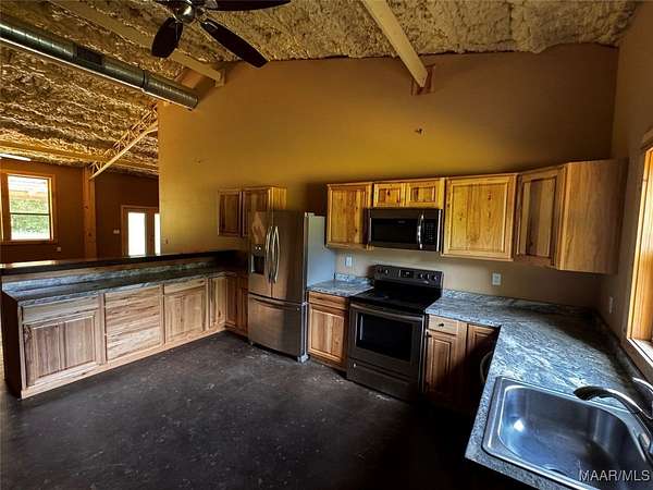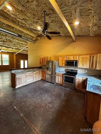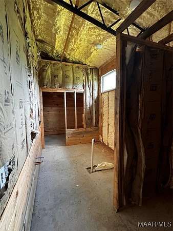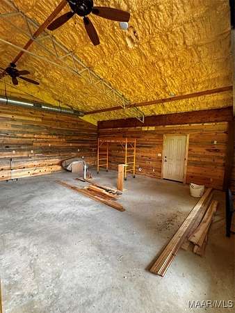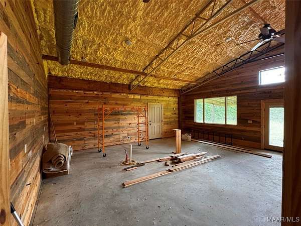 *RUSTIC RETREAT ON 7 ACRES NEAR THE ALABAMA RIVER* Originally designed to be two living spaces, this unique property offers two separate living quarters connected by a spacious garage with roll up doors, perfect for storing ATVs, tractors, boats, and any other equipment. A perfect hunting lodge or camp house! The right side is move-in ready with an open concept living room and kitchen area. This area is spacious, perfect for entertaining. There is a primary bedroom with and ensuite and large walk-in closet. The two guest bedrooms are connected via a Jack-n-Jill bathroom with two vanities and a walk-in shower. There is a shared mudroom and two separate utility rooms, along with a fully concrete safe room, ideal for protection from storms or secure storage. The left side is framed out and ready to be transformed into your ideal space! There are two bedrooms connected by a shared bathroom with electrical and plumbing in place. The kitchen and living space are a blank canvas just waiting to be finished to suit your needs. There are covered porches and plenty of outdoor entertaining space. The property has a pond and is on 7 acres of land. It is located in Wilcox County, an outdoorsman's paradise with vast hunting land and scenic wilderness and this property is not far from easily accessible boat ramps providing access to the Alabama River, known for its world-class bass and crappie fishing! It is just a 10-minute drive from downtown Camden which has all of the local shopping, restaurants and unique culture waiting to be explored! This property offers a rare mix of rural privacy and small-town convenience. Call today for a showing!