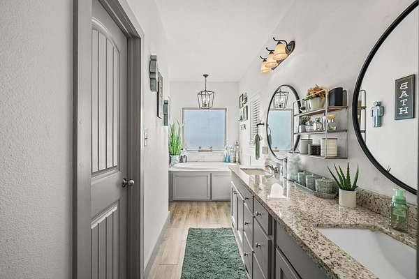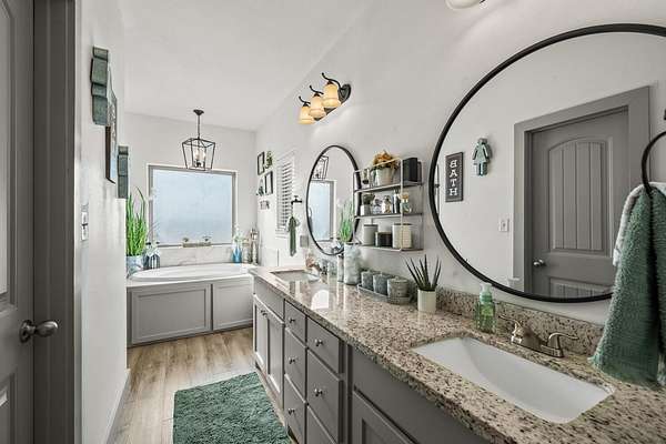 - Ceiling Fan(s), Double Vanity, Granite Counters, Kitchen Island, Open Floorplan, Pantry, Recessed Lighting, Smart Thermostat, Soaking Tub, Walk-In Closet(s)