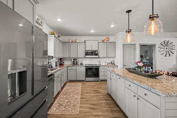 - Dishwasher, Disposal, Free-Standing Electric Range, Microwave, Refrigerator, Smart Appliance(s)