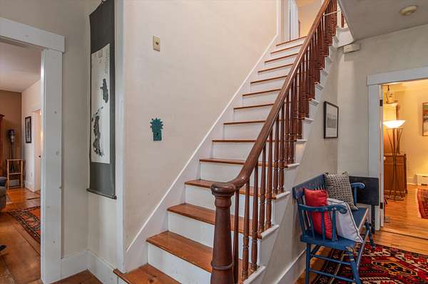 From the center of Saxtons River turn onto Pleasant St which becomes Rockingham Hill Rd. The driveway to the house is on the right 1.1 miles from the center of Saxtons River.