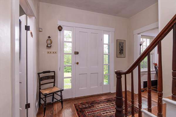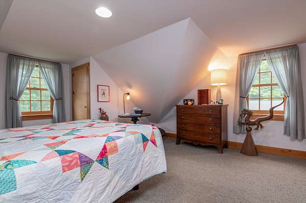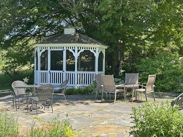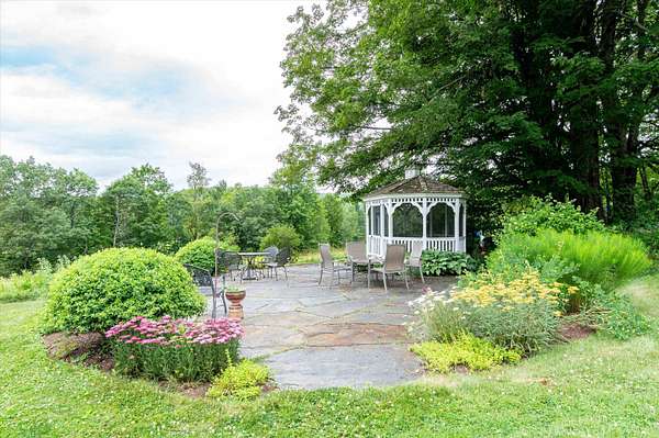 This charming vintage cape set on 6.6 acres is the perfect blend of classic character and modern updates. The home offers 5 bedrooms, 4 baths and spacious common rooms including a lovely three season room just perfect for morning coffee or unwinding at the end of the day. There is a separate entrance in the garage leading to the second floor which offers an opportunity for a private space for extended family, guests or potential income rental. The first floor office can be turned into a bedroom allowing for one level living. Two pantries, a storage room and ample closet space offer lots of storage space inside the house. Updated kitchen, baths, newer windows, newer roofing, and a Tesla wall are just a few of the improvements made to this property. Outside there is a detached 2 car garage with additional storage space and an attached deck. There are stately maples as you approach the house which is graced with lovely perennial beds. A stunning stone patio with a screened gazebo is perfect for entertaining or just relaxing taking in the local view over the open field. The land is a combination of open land, manicured flower beds and woods offering an idyllic setting in every season. Not enough can be said in this brief description. A visit is needed to experience the privacy, serenity and beauty this property offers. Located 1/2 hour to Okemo ski area and 6-7 minutes to I-91.
