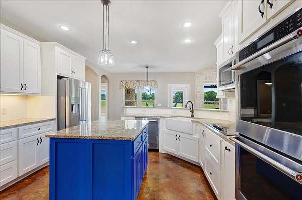 Outside, the property continues to impress with a 60x40 barn complete with electricity, water, two oversized roll-up doors, and a 15-foot overhang—perfect for equipment storage, projects, or entertaining. Additional features include a tankless water heater, whole-home generator, and an in-ground storm shelter for added peace of mind. Enjoy evenings gathered around the custom stone fire pit while taking in panoramic views of the rolling Texas landscape.