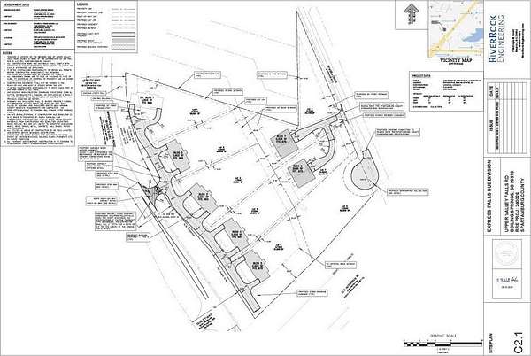 Attention investors and developers- this is the opportunity you've been waiting for! Located in the rapidly growing Boiling Springs area, this 5 acre property on Upper Valley Falls Rd offers unmatched visibility from I-85, dual entry points, and positioned within minutes of Pine St, Asheville Hwy, USC Upstate, and Sherman College. Whether you're looking to build, invest, or establish a commercial business, the possibilities here are endless. The property comes with a major head start: professionally designed and county approved engineering plans for a duplex development (14-units total). The approved layout spans 8 total lots--7 lots for duplexes and 1 lot for a retention pond. The sale includes all development plans, giving a new buyer the ability to start construction immediately! The site already features access to public water and an existing duplex structure, which could be finished quickly for passive income or used as a base of operations during development. The community is named "Express Falls," though the name can be easily changed by the next owner. With access points from Upper Valley Falls and Riviera Dr, the lot offers flexible entry and exit options. This parcel can also be zoned for commercial use. With high daily traffic counts on I-85, this is a perfect spot for a business seeking premium signage exposure. Whether your vision is to complete the approved duplex community, rezone for a larger multi-family complex, or build a commercial enterprise, this land offers a turnkey development community in a high-demand location with great visibility.