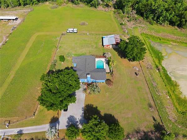 Nestled on approximately 4 scenic acres, this beautifully crafted 4-bedroom, 2.5-bathroom Craftsman-style Ernie White Custom Home pool home offers the perfect blend of comfort, character, and privacy in Lakeland—with no HOA or CDD. Surrounded by peaceful creek views and the charm of a nearby seasonal flower and strawberry patch, the setting feels like a private retreat where you can slow down, spread out, and truly enjoy Florida living.