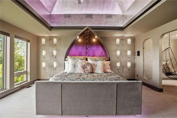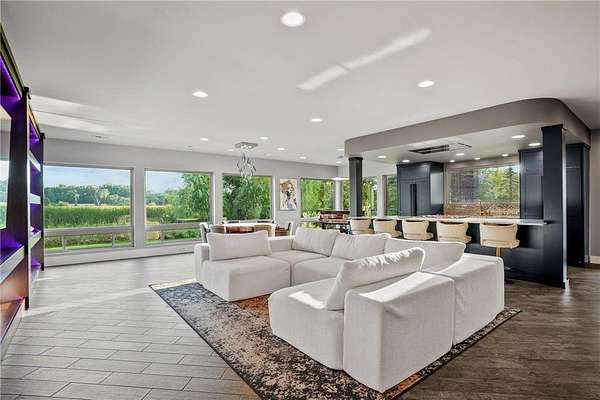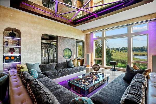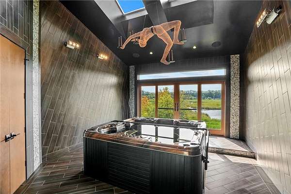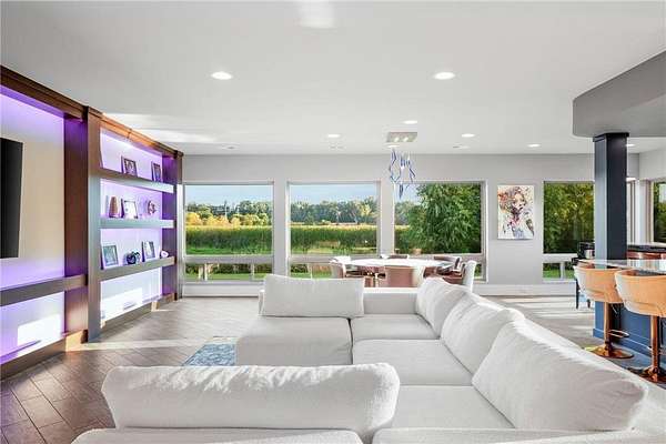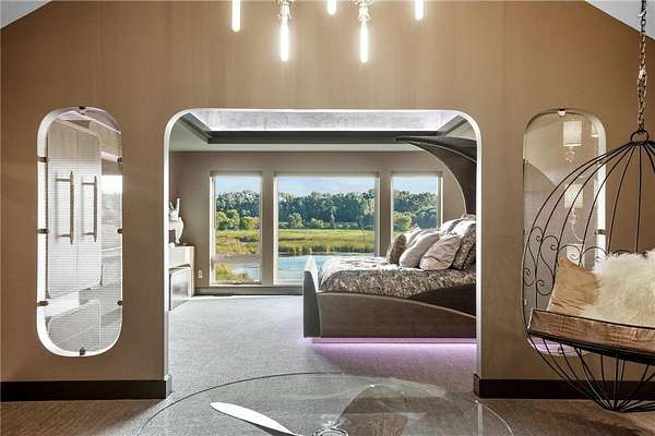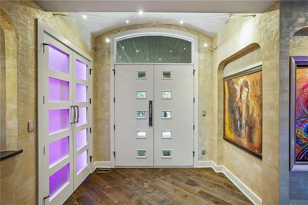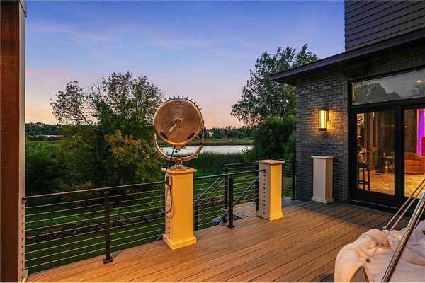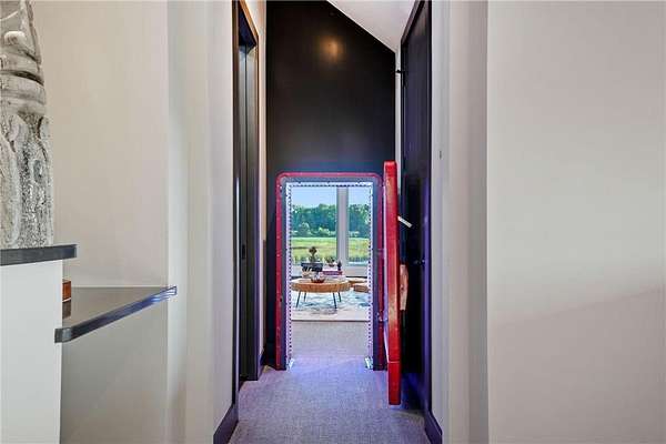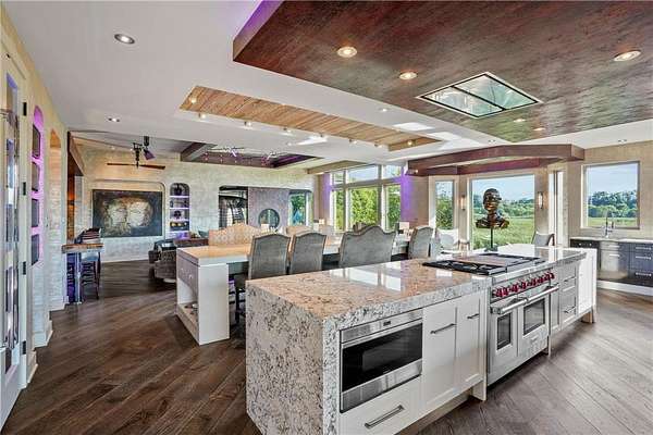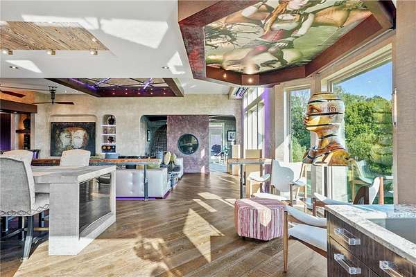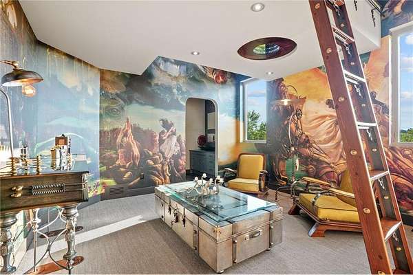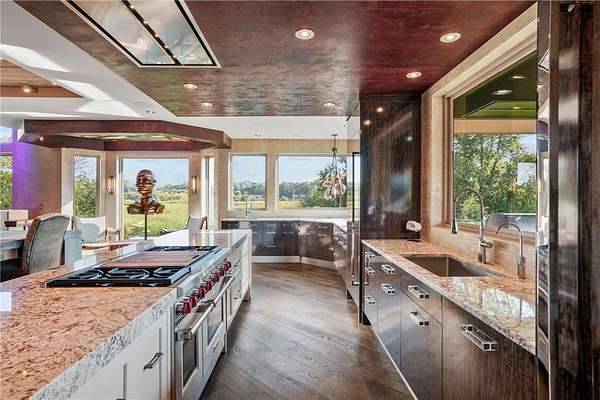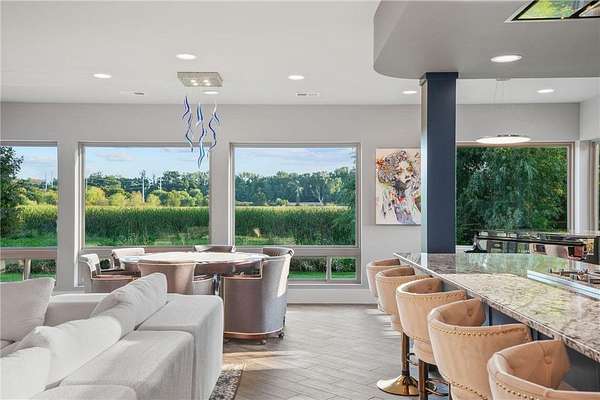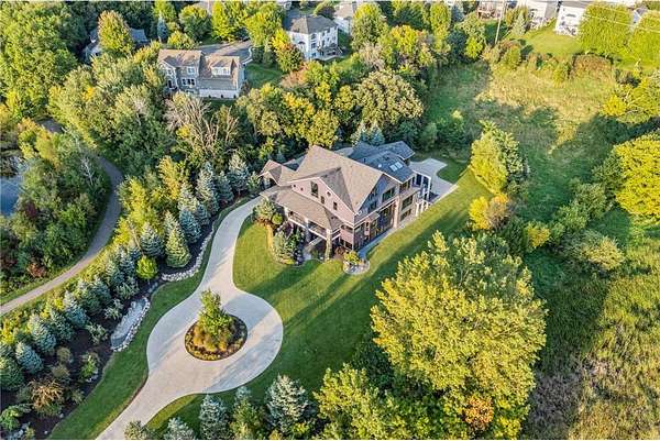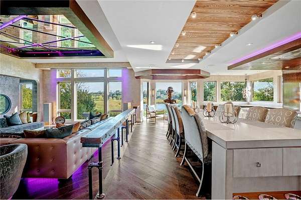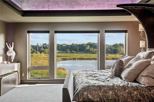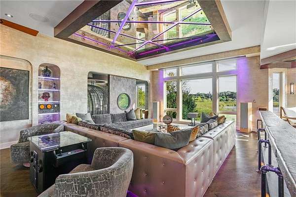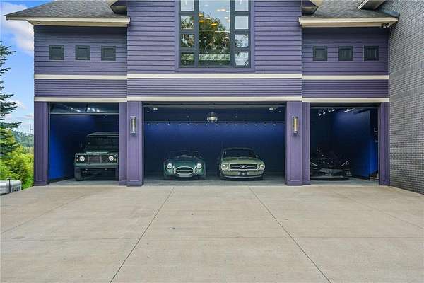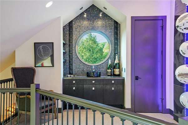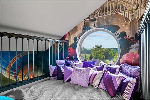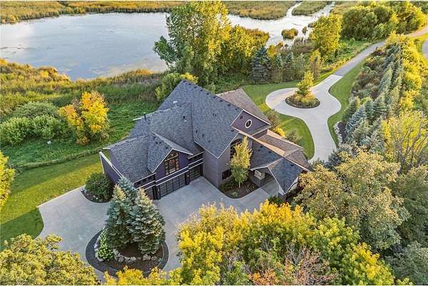 Some homes are built--others are conjured. Set upon 36 private acres in Plymouth, Minnesota, The Purple House is not merely a house, but a portal to another realm--an architectural spell cast in steel, glass, and wood over years of obsessive design. This extraordinary estate seamlessly blends art, history, and modern luxury across its thoughtfully orchestrated levels: a grand main floor featuring floor-to-ceiling windows, chef's kitchen with granite countertops and twin appliances, custom bar, and two-sided circular fireplace connecting open living spaces; a sumptuous primary suite with custom-built furnishings, sparkling indoor/outdoor hot tub, and spa-like ensuite with meditation room; whimsical children's quarters with lofted beds and secret passages; a fully ADA-compliant lower level with separate kitchen, additional bedrooms, and private entry ideal for multi-generational living; plus a celestial upper floor retreat hidden behind vintage doors. Beyond its walls, nine acres of usable high ground stretch across pond, meadow, and forest--a private preserve where mature trees guard your privacy and western sunsets paint the sky. With six bedrooms, five bathrooms, 9,800 square feet, 9 garage stalls with capacity for 13, 220 lighting automations, and countless bespoke elements throughout, The Purple House transcends typical luxury. Welcome to a living work of art where every room tells a story, and imagination knows no bounds.