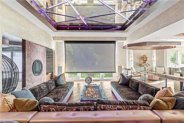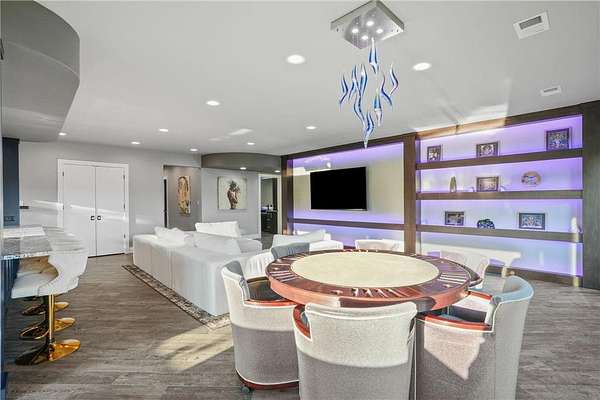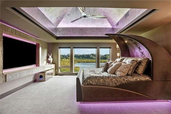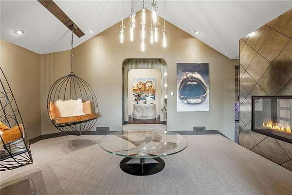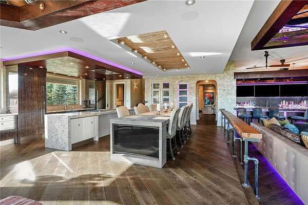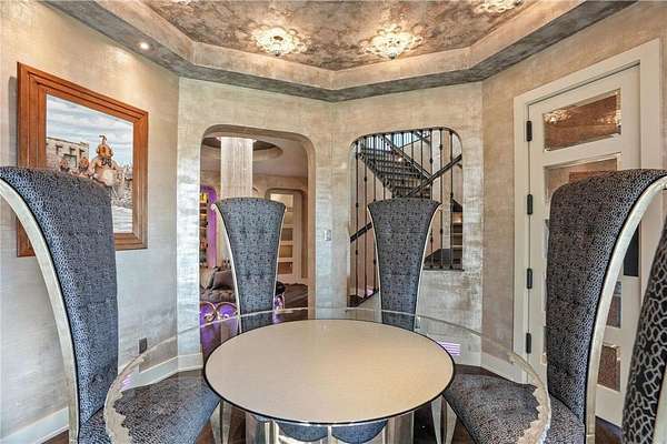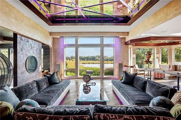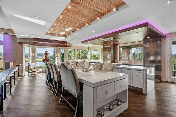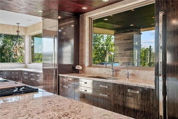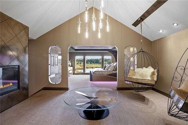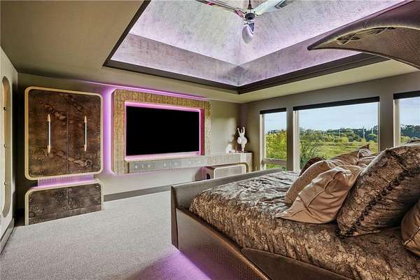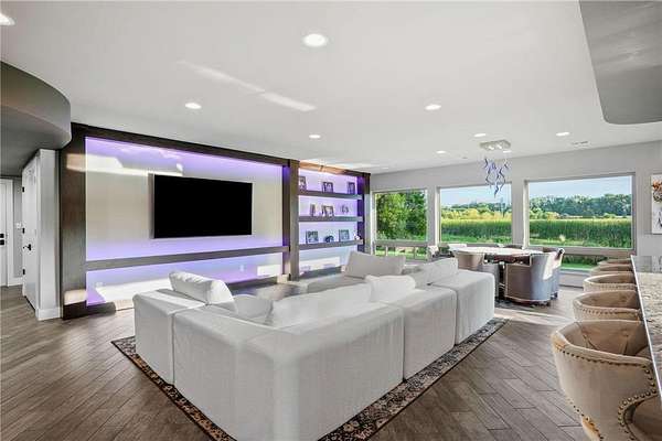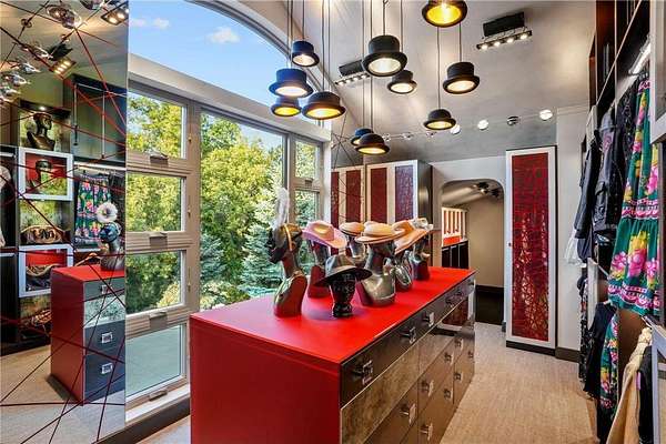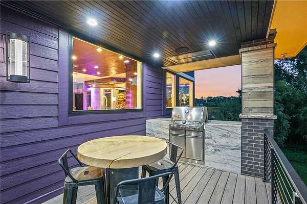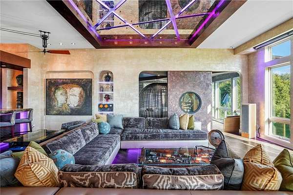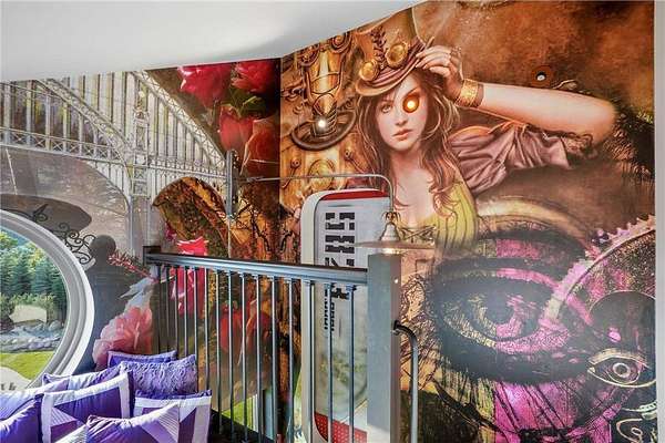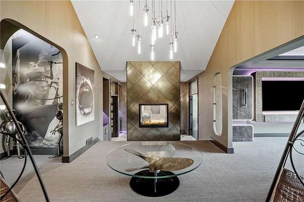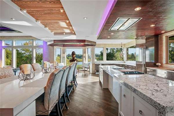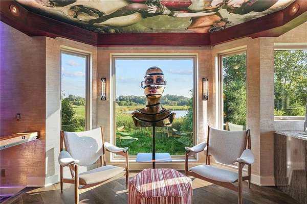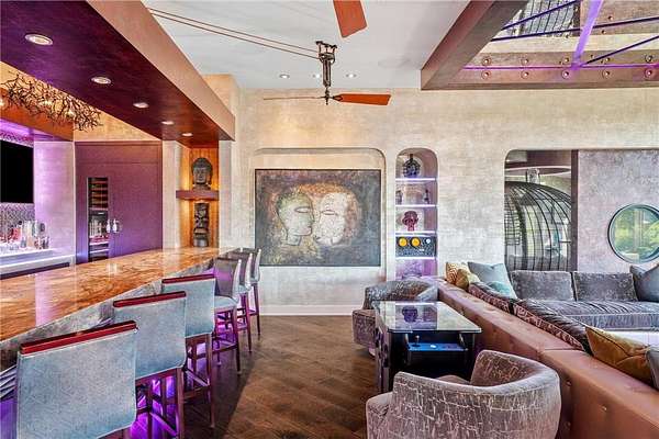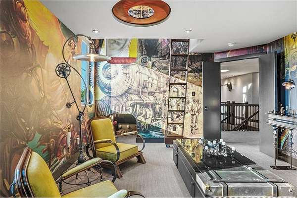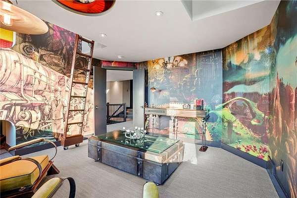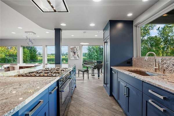 Some homes are built--others are conjured. Set upon 36 private acres in Plymouth, Minnesota, The Purple House is not merely a house, but a portal to another realm--an architectural spell cast in steel, glass, and wood over years of obsessive design. This extraordinary estate seamlessly blends art, history, and modern luxury across its thoughtfully orchestrated levels: a grand main floor featuring floor-to-ceiling windows, chef's kitchen with granite countertops and twin appliances, custom bar, and two-sided circular fireplace connecting open living spaces; a sumptuous primary suite with custom-built furnishings, sparkling indoor/outdoor hot tub, and spa-like ensuite with meditation room; whimsical children's quarters with lofted beds and secret passages; a fully ADA-compliant lower level with separate kitchen, additional bedrooms, and private entry ideal for multi-generational living; plus a celestial upper floor retreat hidden behind vintage doors. Beyond its walls, nine acres of usable high ground stretch across pond, meadow, and forest--a private preserve where mature trees guard your privacy and western sunsets paint the sky. With six bedrooms, five bathrooms, 9,800 square feet, 9 garage stalls with capacity for 13, 220 lighting automations, and countless bespoke elements throughout, The Purple House transcends typical luxury. Welcome to a living work of art where every room tells a story, and imagination knows no bounds.