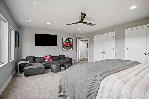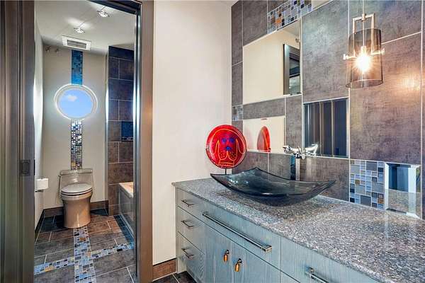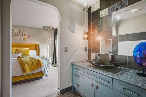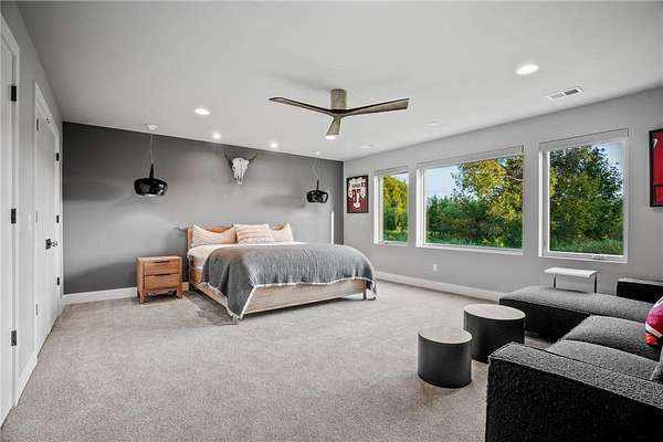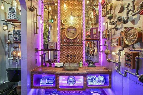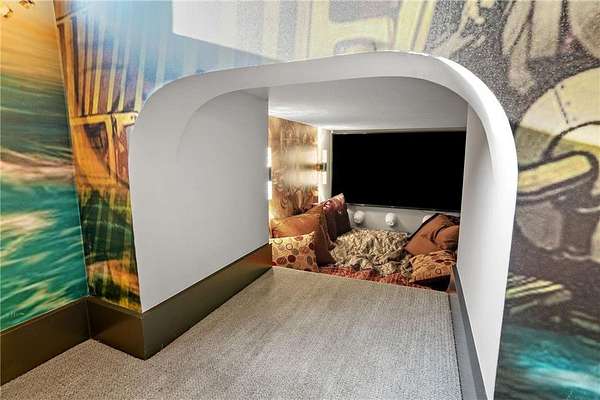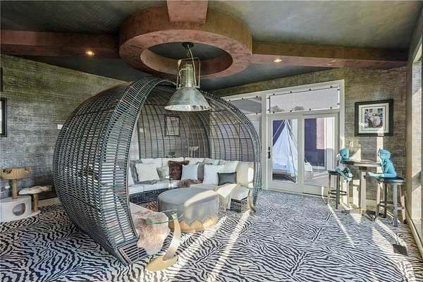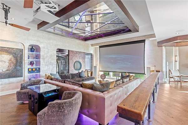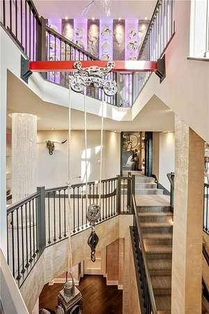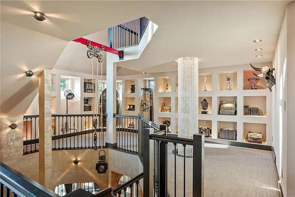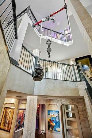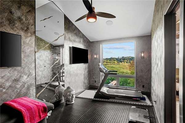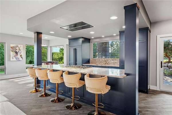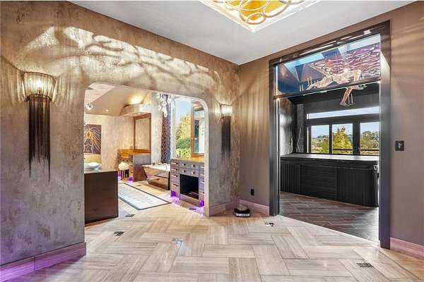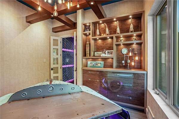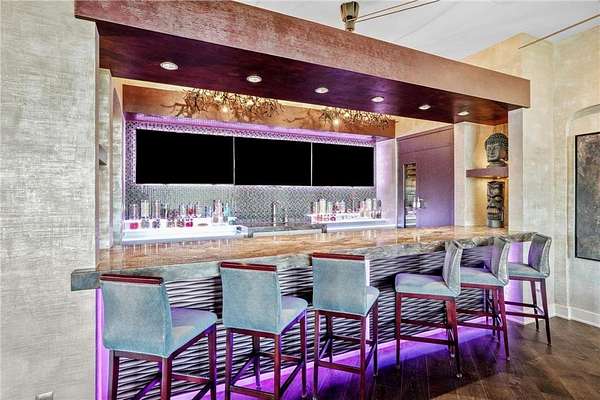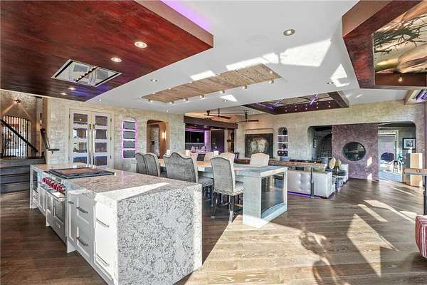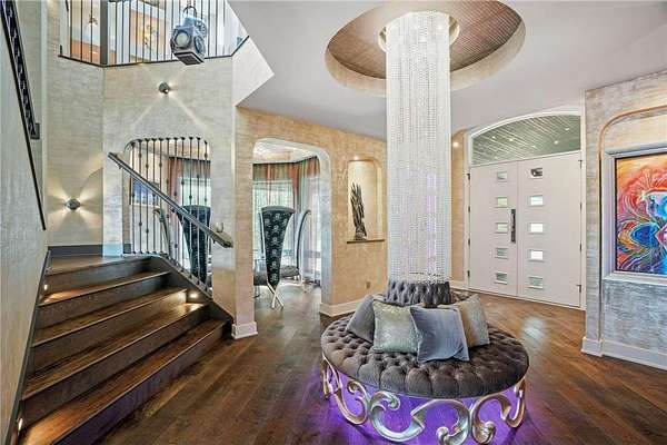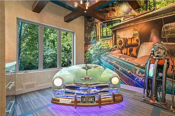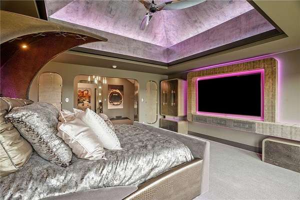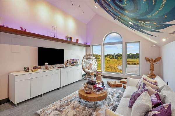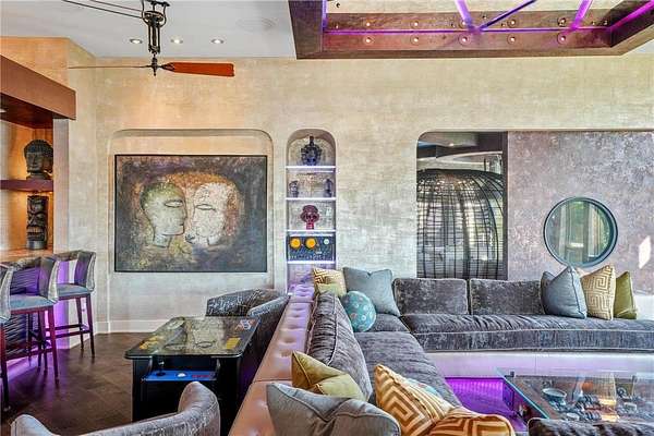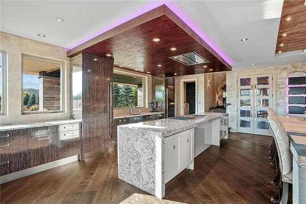 Some homes are built--others are conjured. Set upon 36 private acres in Plymouth, Minnesota, The Purple House is not merely a house, but a portal to another realm--an architectural spell cast in steel, glass, and wood over years of obsessive design. This extraordinary estate seamlessly blends art, history, and modern luxury across its thoughtfully orchestrated levels: a grand main floor featuring floor-to-ceiling windows, chef's kitchen with granite countertops and twin appliances, custom bar, and two-sided circular fireplace connecting open living spaces; a sumptuous primary suite with custom-built furnishings, sparkling indoor/outdoor hot tub, and spa-like ensuite with meditation room; whimsical children's quarters with lofted beds and secret passages; a fully ADA-compliant lower level with separate kitchen, additional bedrooms, and private entry ideal for multi-generational living; plus a celestial upper floor retreat hidden behind vintage doors. Beyond its walls, nine acres of usable high ground stretch across pond, meadow, and forest--a private preserve where mature trees guard your privacy and western sunsets paint the sky. With six bedrooms, five bathrooms, 9,800 square feet, 9 garage stalls with capacity for 13, 220 lighting automations, and countless bespoke elements throughout, The Purple House transcends typical luxury. Welcome to a living work of art where every room tells a story, and imagination knows no bounds.