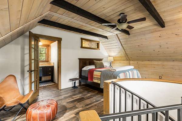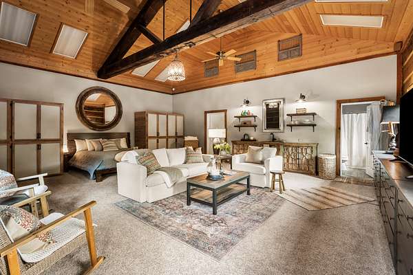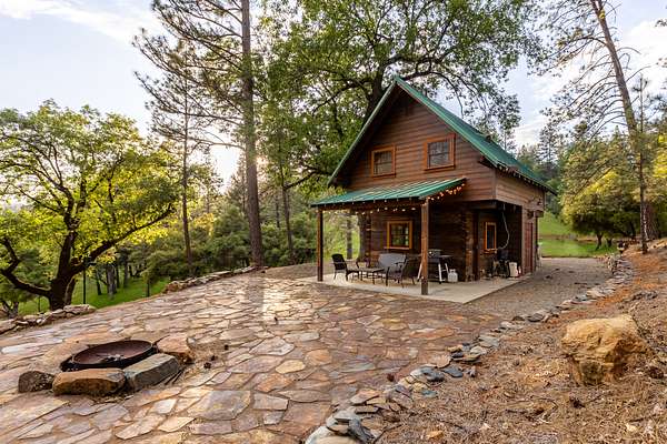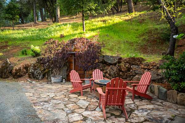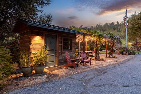 A serene waterfall and gently flowing brook enrich the landscape near the main home, enhancing the peaceful, storybook feel of the ranch. For more intimate occasions, a private wine cave, a tribute to the California Gold Rush of 1849, offers a one-of-a-kind setting for tastings, storytelling, and reflection. Beyond the main residence, the ranch offers versatile accommodations for guests and extended family, including a charming 750 SF guest cabin and a 900 SF studio apartment. Additional improvements include a 75 x 130 covered tractor barn, small outbuildings and sheds to support both lifestyle and ranch operations, and a large helicopter pad.