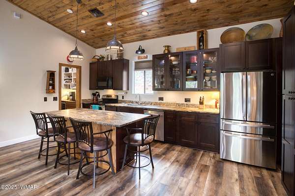 Tucked away on nearly 2 acres of tall pines and backing directly to USFS, this custom cabin offers the peace, privacy, and adventure you've been dreaming of. A long private driveway leads to the home, a true forest retreat while still being minutes from town. Inside, the remodeled kitchen features upgraded cabinetry, appliances, and custom woodwork, opening to a warm living space anchored by a propane fireplace. Natural light fills the home through windows and sky tubes, while a large bonus room serves as a den that adds flexibility. Recent upgrades include a new HVAC system with smart thermostat, mini-split in the primary suite, dual tankless propane water heaters, updated bathrooms, new fencing and much more. You have to see to appreciate