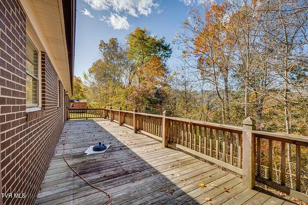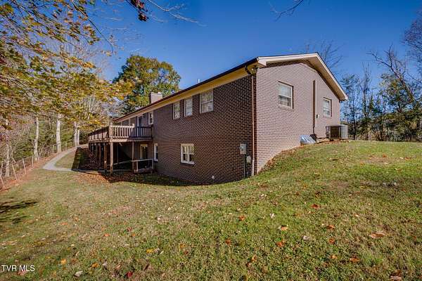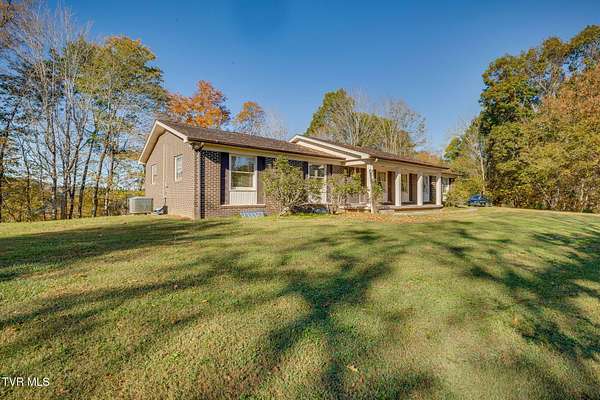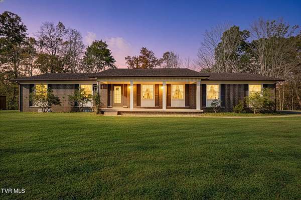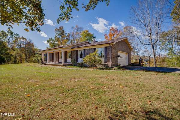 BACK ON THE MARKET WITH NO FAULT OF THE SELLERLooking for a Private Home on almost 13 acres with No City Taxes, This Home is located in an Extremely Convenient Location, Just Minutes from Bristol and Kingsport, This All Brick Ranch Home has Been Immaculately Cared for, Large Level Yard, Huge main Level Garage, Home has 2 Kitchens one on each Level, Beautiful Views and Privacy abound from this home, Large covered front porch and a Massive Sized Deck for relaxing and Viewing all the wildlife from your surrounding acreage, Main Level Features Large entry Foyer, Huge living room ,Large Kitchen with Island with lots of cabinets, dining room is open to kitchen with a fireplace,5 Bedrooms total, 3 on Main Level and 2 bedrooms Downstairs, Main Level Owners Suite, Main Level has beautiful hardwood floors throughout except kitchen and baths, 3 Bathrooms total , Downstairs there's another large living room with a second fireplace, a second large full kitchen, 2 huge bedrooms and bathroom, also there's a large bonus room for storage, This home is an estate and is in excellent condition but selling home AS IS. So much to offer at this Unique Property, also long paved driveway to home and 2 outbuildings, BUYER TO VERIFY ALL INFORMATION. Priced to sell at only $389,000