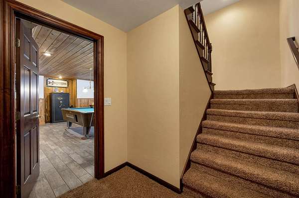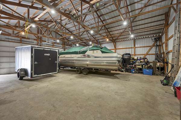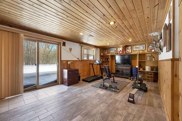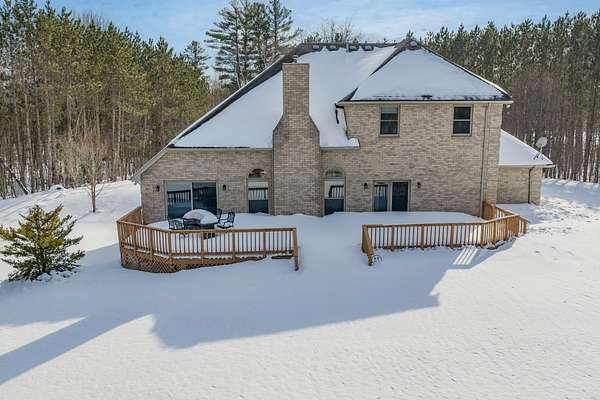 Welcome to your own private retreat on 12 serene, mostly wooded acres! This one-owner, quality-built all-brick home offers space, comfort, and incredible entertaining potential. The finished walk-out lower level is designed for hosting with a pool area, wet bar, exercise space, and half bath. A massive detached shop provides endless possibilities for storage, hobbies, or workspace. The main level features an open-concept kitchen, dining, and living area filled with natural light, along with convenient first-floor laundry. The spacious primary suite offers a walk-in closet and full bath. Upstairs, you'll find two additional bedrooms and a full bathroom. Enjoy peaceful views from every window and relax on the deck surrounded by nature. Lower level square footage per Matterport.