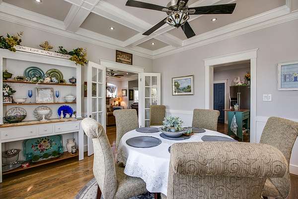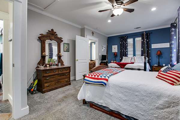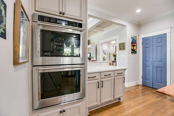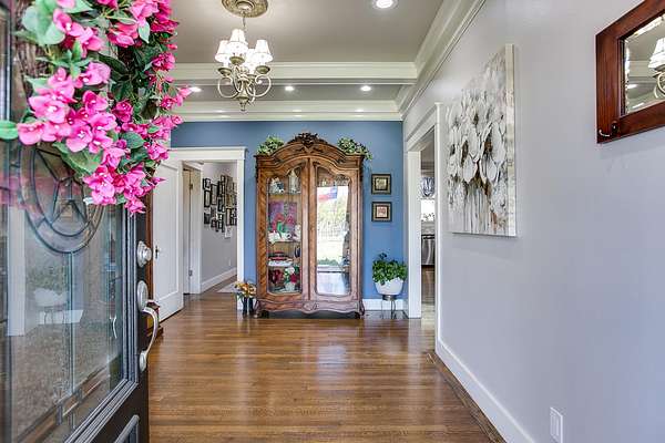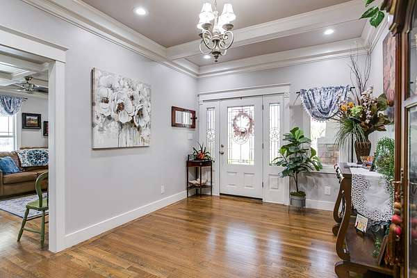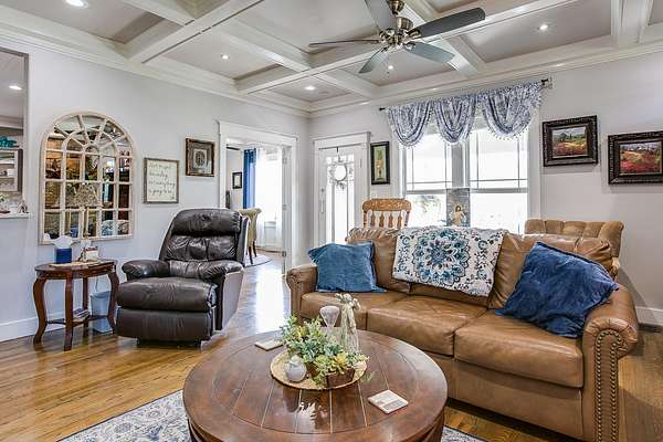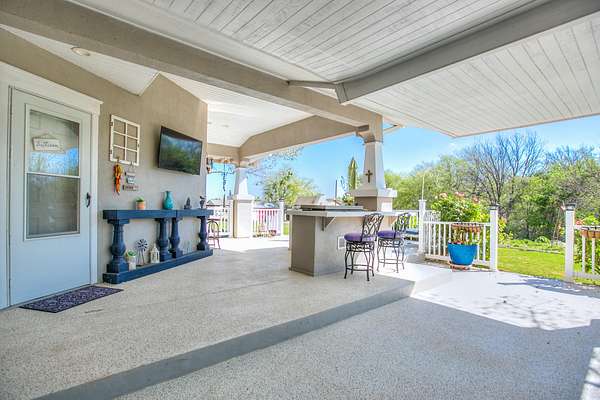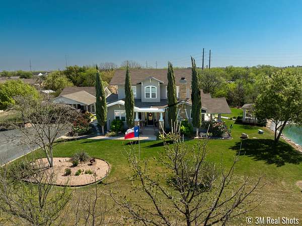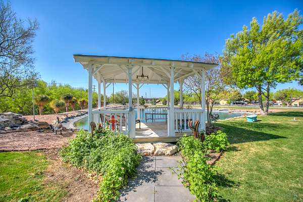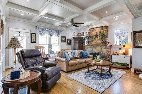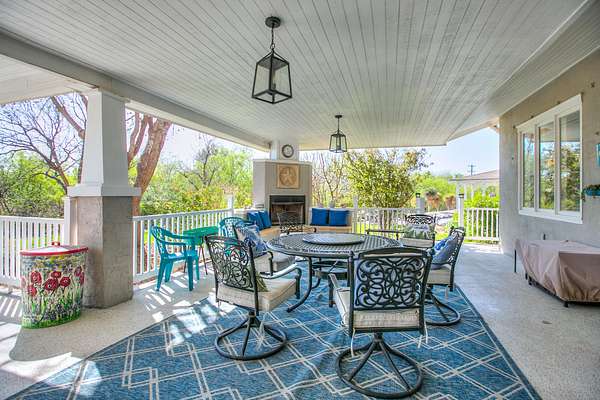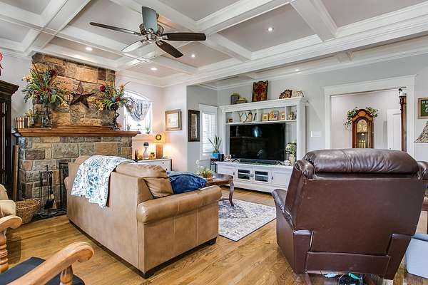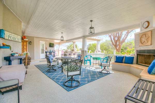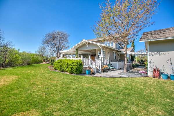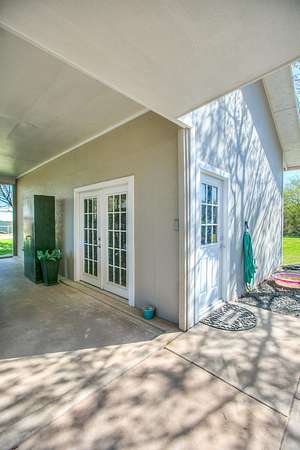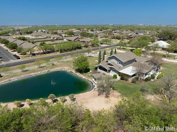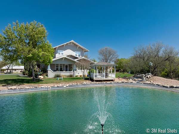 Welcome to your own private retreat just minutes from town! This beautifully updated property offers the perfect blend of comfort, space, and scenic outdoor living. Situated on a spacious lot, this charming home features a welcoming front entry framed by mature trees and manicured landscaping. A long driveway leads to ample parking and a covered carport, with additional outbuildings providing extra storage or workspace. Inside, you'll find a warm and inviting living area highlighted by a stunning stone fireplace, custom built-ins, and a coffered ceiling that adds character and elegance. Large windows fill the space with natural light, creating a cozy yet open atmosphere perfect for relaxing or entertaining. Step outside to your covered back patio-an entertainer's dream! Complete with an outdoor fireplace and plenty of seating space, it's ideal for hosting gatherings year-round. Overlooking the property is a picturesque private pond with a working water fountain, offering peaceful views and a true sense of tranquility. Whether you're enjoying quiet mornings on the porch, entertaining guests in the spacious living areas, or taking in the serene outdoor setting, this property has something for everyone. Don't miss your chance to own this unique slice of country living with convenient access to town amenities!