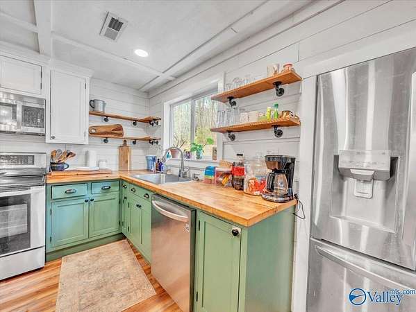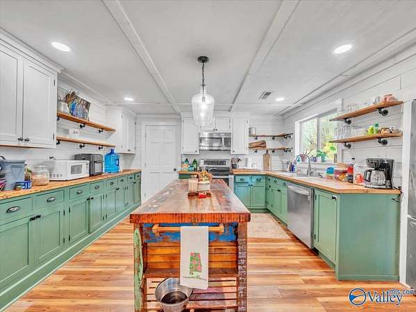 32-Acre Mountain Sanctuary: Escape to your private valley oasis where rustic charm meets 2026 luxury. This sprawling 32-acre estate offers breathtaking views of Lookout Mountain and a lifestyle of unmatched tranquility. The primary 3BR/2BA cottage is a designer's dream, featuring custom cabinetry, butcher block countertops, granite vanities, and warm gas logs. An additional authentic log cabin, complete with a wood-burning heater and a classic porcelain tub-perfect for guests or a high-end short-term rental.The land is a playground of natural beauty, featuring fruit trees, a pond, natural spring, and well with an enclosed pump house. Metal roofs put on all buildings 3 yrs ago.