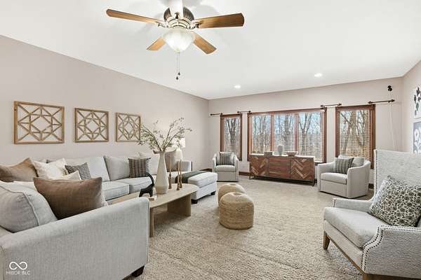 Nestled on 2.56 wooded acres in highly sought-after Plainfield schools, this custom-built home delivers the perfect balance of privacy, space, and everyday comfort. Tucked away in a peaceful setting with mature trees and a beautiful wooded ravine leading down to White Lick Creek, you'll enjoy true country living while remaining minutes from Plainfield and Mooresville amenities. Designed for both gathering and retreat, the home offers three separate family-style living spaces, giving everyone room to spread out. Hardwood floors flow throughout the main level, anchored by a stunning floor-to-ceiling, dual-sided stone fireplace that creates warmth and character from every angle. The main-level primary suite is its own private escape, complete with a private patio overlooking the woods, expansive his-and-hers walk-in closets, a jetted tub w/ a private in-set shower make for a layout built for comfort. A large loft overlooks the two story entry and offers flexible space for a media room, playroom, or home office, along with convenient access to unfinished attic storage. Bedrooms two and three share a Jack-and-Jill bath, while bedroom four enjoys its own private en suite.....laundry hook ups on both levels making daily life a little easier. Step outside to an expansive covered back porch overlooking your wooded acreage, beautiful scenery and wildlife year round. The 24x40 pole barn provides additional storage or hobby space, and the fully finished garage with epoxy floors completes the package. If you've been searching for privacy, natural beauty, and room to breathe - without sacrificing convenience - this is it. Geothermal heat, your only bill is electric which averages $175/mo.