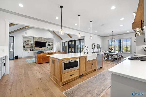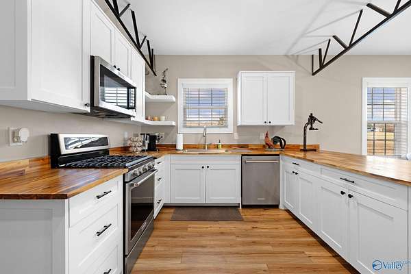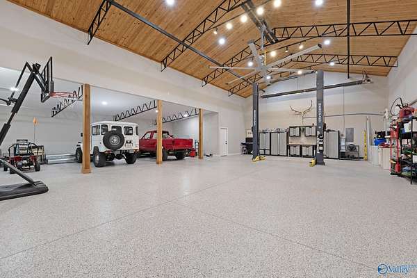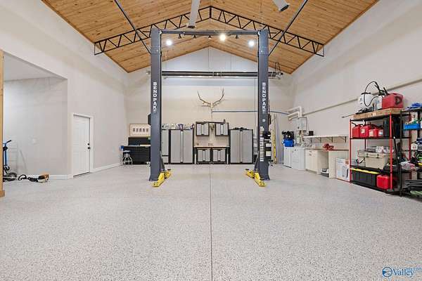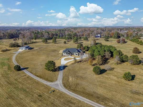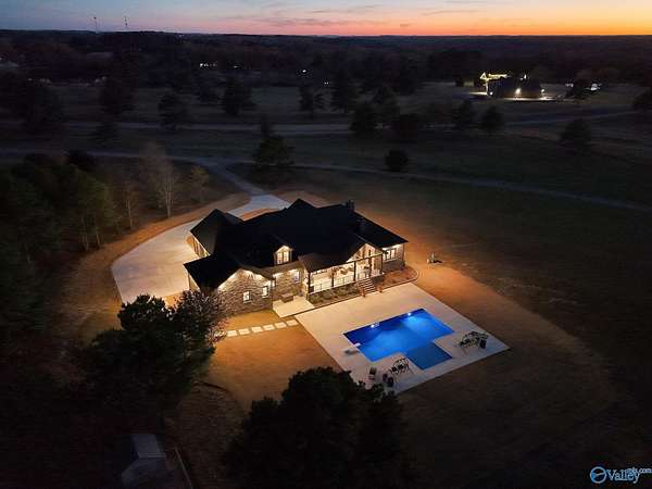 Welcome to 5168 Georgia Mountain Road, a custom-built estate that redefines the modern countryside retreat. Set on 30 private acres within The Fairways at Stoney Mountain, this almost-new construction blends luxury, rustic charm, and practical living-all while placing you just minutes from top-rated destinations such as Lake Guntersville. Enjoy a rare level of freedom and versatility to make the property truly your own. Passing through the private gated entrance the land unfolds! Once inside the home you will find 4 Bedrooms plus a Bonus Room Upstairs, Wolf Appliances, Quartz Countertops a Salt Water Pool, and a Fully Finished Shop/Barn for Hobbies, Business or Living Space at your fingertip