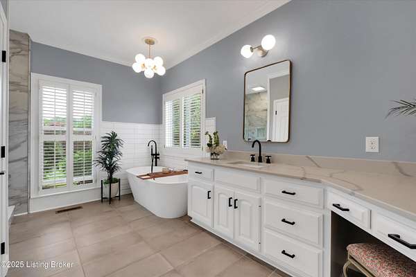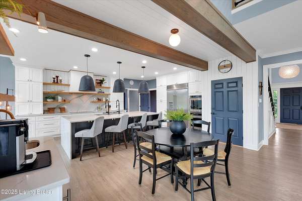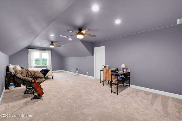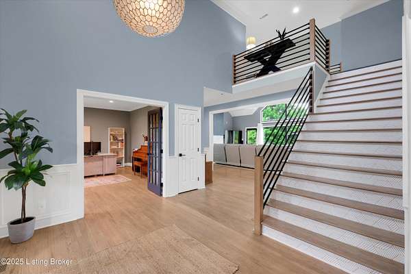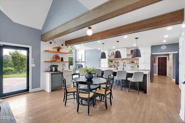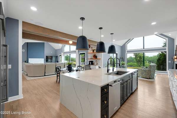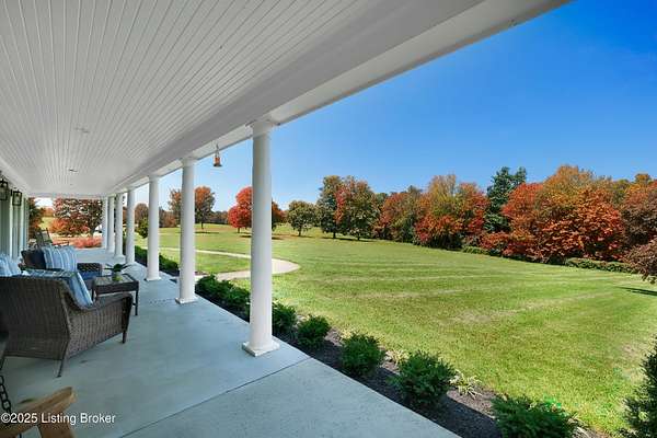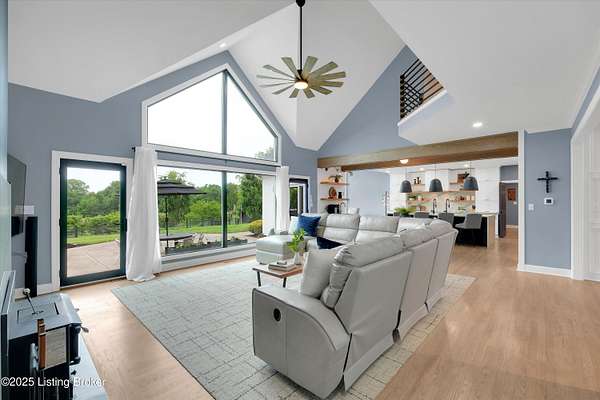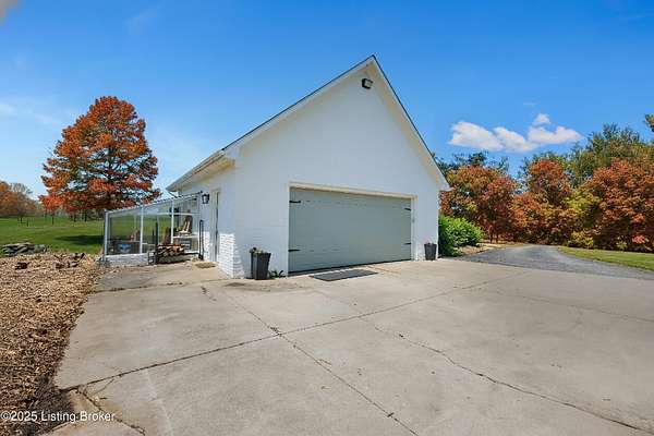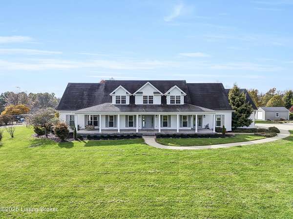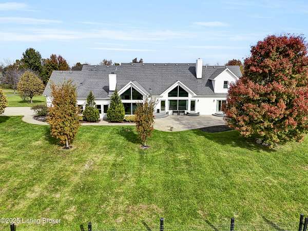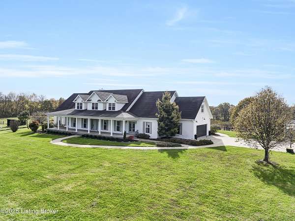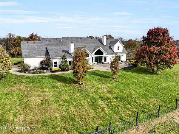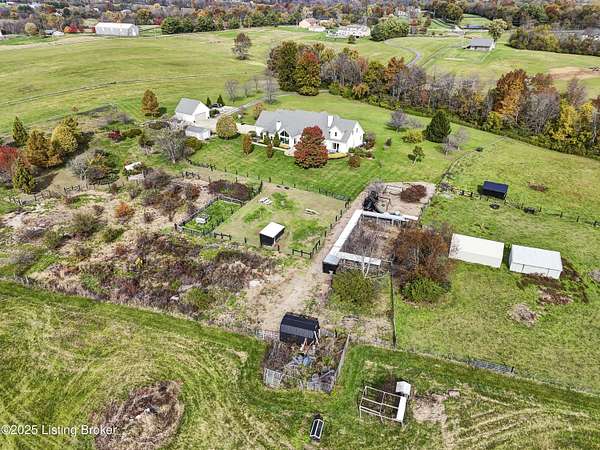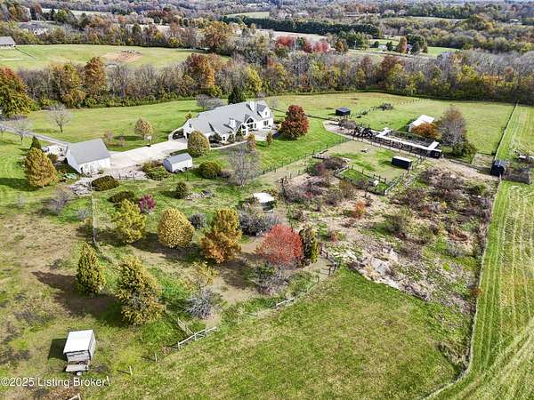 A perfect blend of luxury and country living awaits on just under 35 ACRES with this spectacular 5-bedroom, 6.5-bath estate. Thoughtfully designed to combine comfort with rural elegance, this home invites you to live beautifully and peacefully, both indoors and out. The 2-story great room features soaring windows that frame sweeping views of the countryside. The open-concept flows seamlessly into a CHEF'S KITCHEN, complete with DOUBLE OVENS AND 2 DISHWASHERS, a striking waterfall quartz island with storage, a 46'' prep sink, appliance garages, and nearby an expansive walk-in pantry. The vaulted hearth room provides additional living or dining space, adding warmth and charm-a perfect way to start your day. The main-floor primary suite offers a spacious retreat with... ...walk-in closet and private patio access overlooking the serene landscape. Upstairs are 4 generously sized bedrooms - 2 with ensuite baths and 2 sharing a Jack-and-Jill bath. The finished basement includes a home gym, bonus space currently used as a GOLF SIMULATOR, bonus space with full bath, game area, and living room. Outside, enjoy ample storage for equipment, a GREENHOUSE attached to the bonus 2-car detached garage, raised garden beds with a wrap-around chicken run, and fenced acreage ideal for horses (the current owner has donkeys), cattle, goats, or chickens. With wooded areas and a creek, wildlife (including deer and wild turkey) is abundant. Schedule your showing to experience for yourself this rare opportunity of privacy, natural beauty, and modern luxury in a timeless country setting.