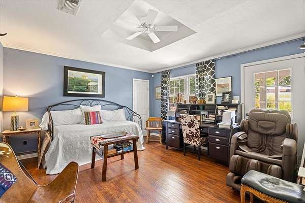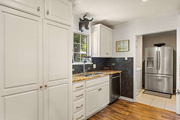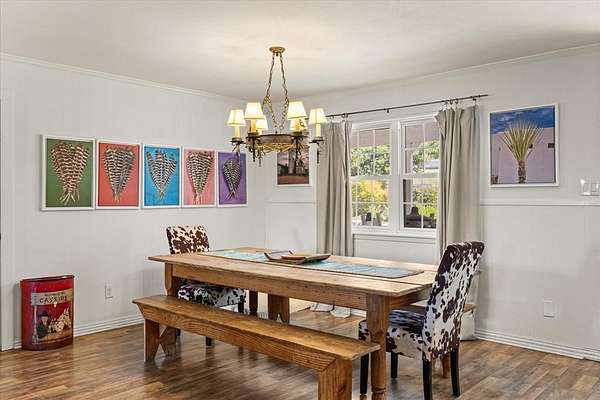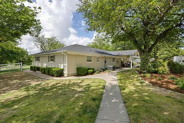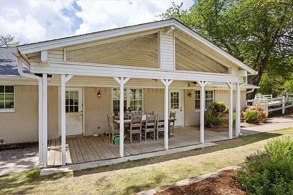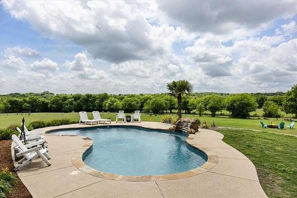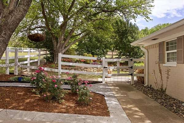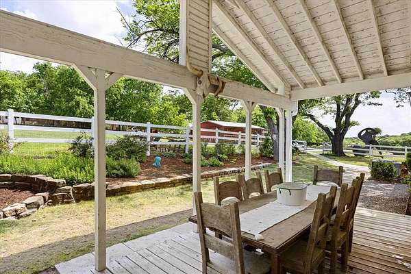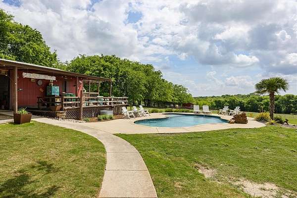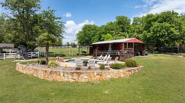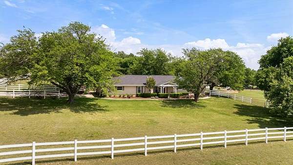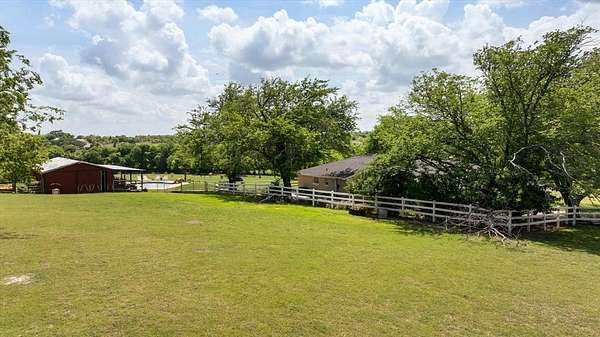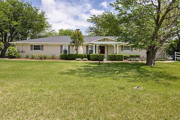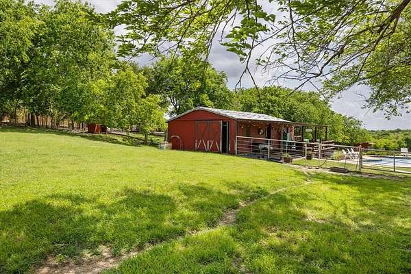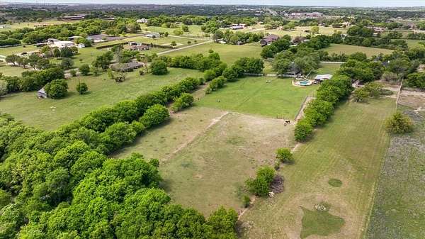 This home, on just under 4 acres, is surrounded by large trees and beautifully landscaped. The property backs up to the Lake Benbrook Holiday Park area, which has 7.3-mile horseback and hiking trails and property allows more than one horse. There is also a 1 acre area that is an easement, which the current owners have been using for horses. 4 current fenced pastures, small barn and loafing shed. A pool house with views of the property and pool. The home offers 2335 sqft featuring 3 bedrooms and 2 baths with office or 4th bedroom. The living room, dining and kitchen area open to one another creating the perfect entertaining space. The kitchen has an island, double ovens, granite countertops, ample cabinetry, and a built-in desk area. Bring your horse to this beautiful property and it's just 10 miles from Dickies Arena. New roof in 2025.