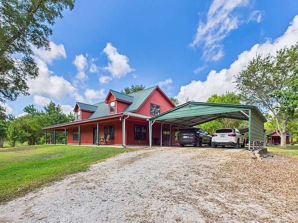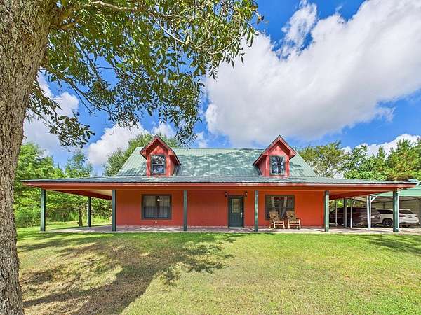 Est $3,126/moCountry living right here! This beautiful home is situated perfectly on 11.8 acres and offers plenty or room for farm animals, gardening or just relaxing in the shade. This home offers a large living area with tall ceilings, open kitchen and a great loft overlooking the living room. The primary suite has a lot of room and your own private access to the outdoors. There is a wrap around porch for sitting out and enjoying the wildlife, shade trees and just plain relaxing. There is small pond for fishing and providing a great water source for whitetail.