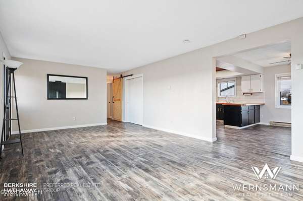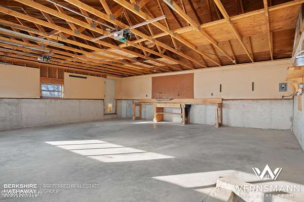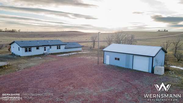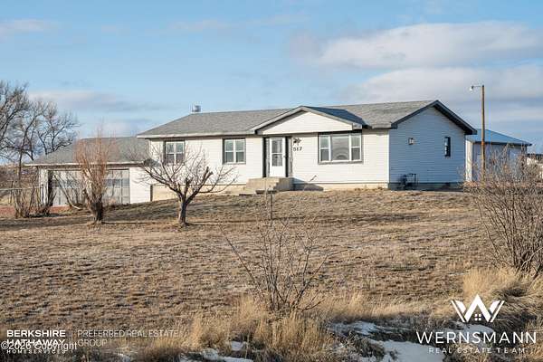Currently under contract with a 72 hr first right of refusal. Home blends fresh modern finishes with timeless original charm. The main level offers a spacious kitchen and dining area that flows into the inviting living room, featuring a cozy gas fireplace and large windows for abundant natural light. The primary suite includes a fully updated private bathroom, while two additional bedrooms, a full bath, and main-level laundry complete the main level. The partially finished basement features two non-conforming bedrooms, providing excellent potential to build equity and tailor the space to your needs. An attached two-car garage adds convenience. Siting on 4.9 acres with easy access to I-90, property also includes a 38x25 insulated shop with concrete floors, power, heat, and water