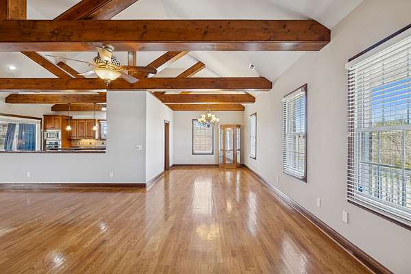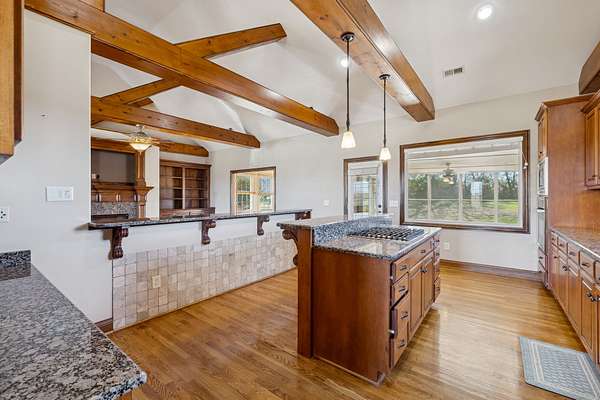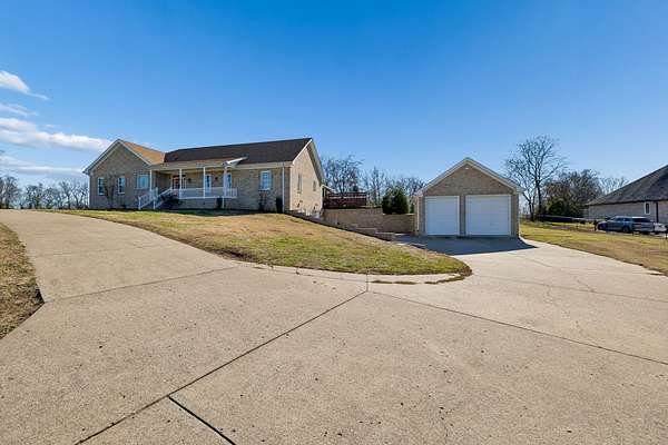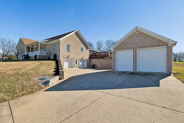 Stunning hilltop home in Gallatin on 1.57 acres with the option to purchase the rear lot (additional 2.12 acres) to total almost 4 acres! Over 4,000 sq ft with 3 bedrooms, 3 full baths, an oversized 2-car attached garage, and a 2-car detached garage with 10 ft doors. Open living room features 16' ceilings, built-ins, hardwoods, wood beams and a gas fireplace. The kitchen was designed for entertaining and offers granite, tiled backsplash, large island and all appliances remain. Combination formal dining room. Huge owner's suite at main level with walk-in closet, tiled floors, double vanities, separate shower and jacuzzi tub. Spacious secondary bedrooms with walk-in closets. Full finished basement creates ideal in-law or adult living quarters with full kitchen (all appliances to remain), full bath, studio/office and large utility room with washer/dryer, plus an additional washer/dryer are located on the main level. Wonderful sunroom and decking where a pool once existed - can remain or be removed. Permanent holiday lights in place! Located directly across from Old Hickory Lake with multiple boat launches within 1 mile of the property!
